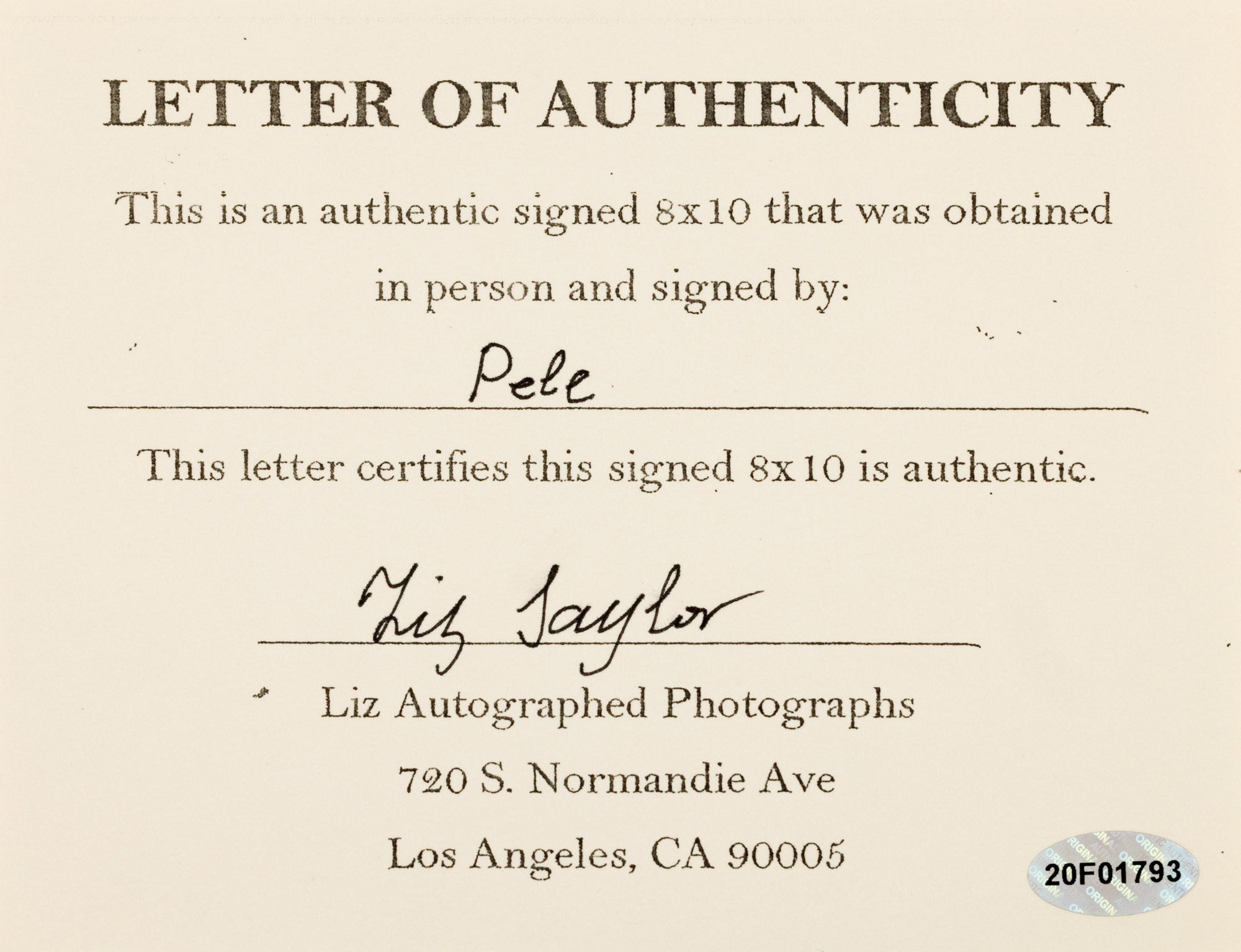 13. Fotografie reprezentându-l pe Pele, cu semnătura olografă a acestuia, însoțită de certificat de autenticitate