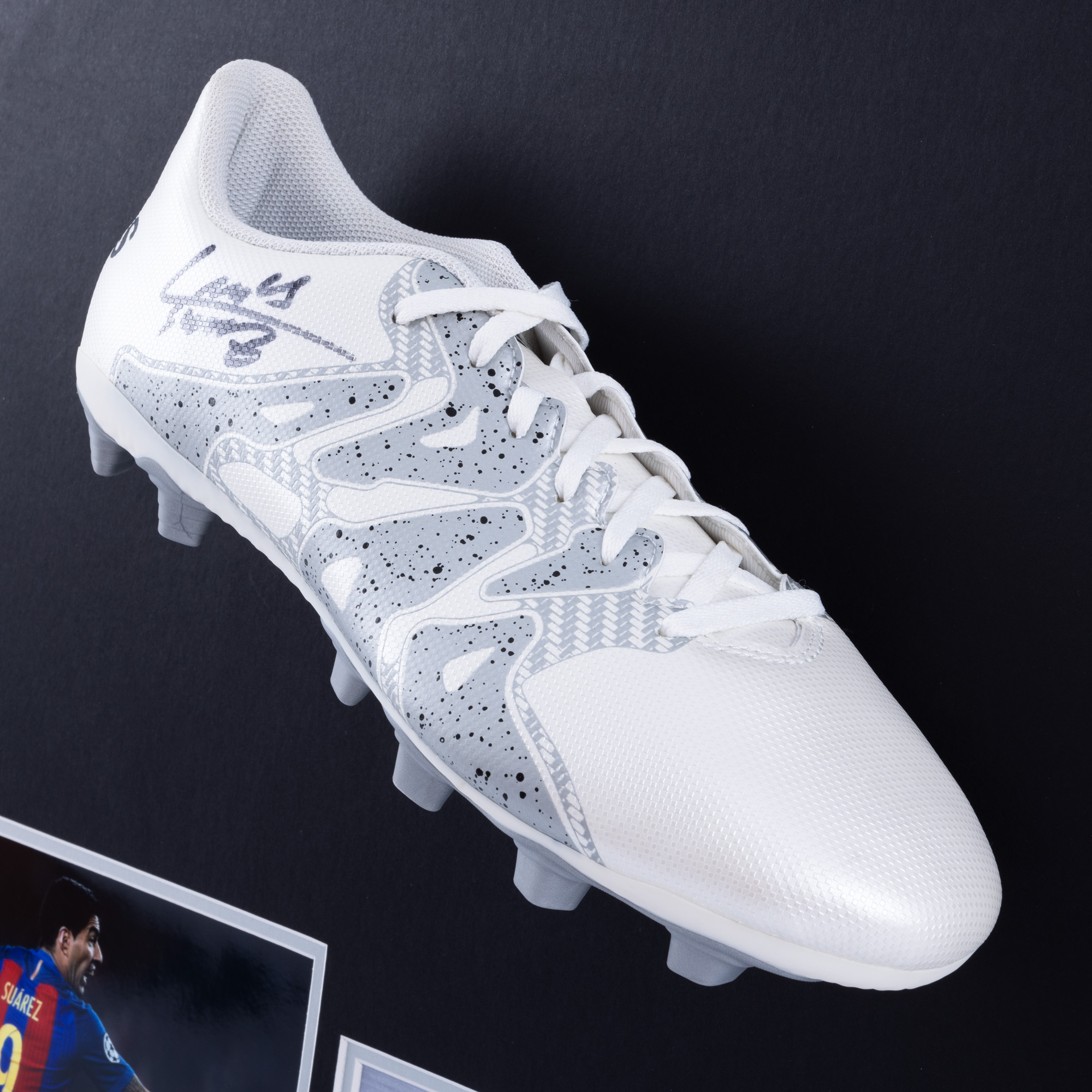 80. Gheată de fotbal Adidas, cu semnătura olografă a lui Luis Suarez, supranumit "El Pistolero"