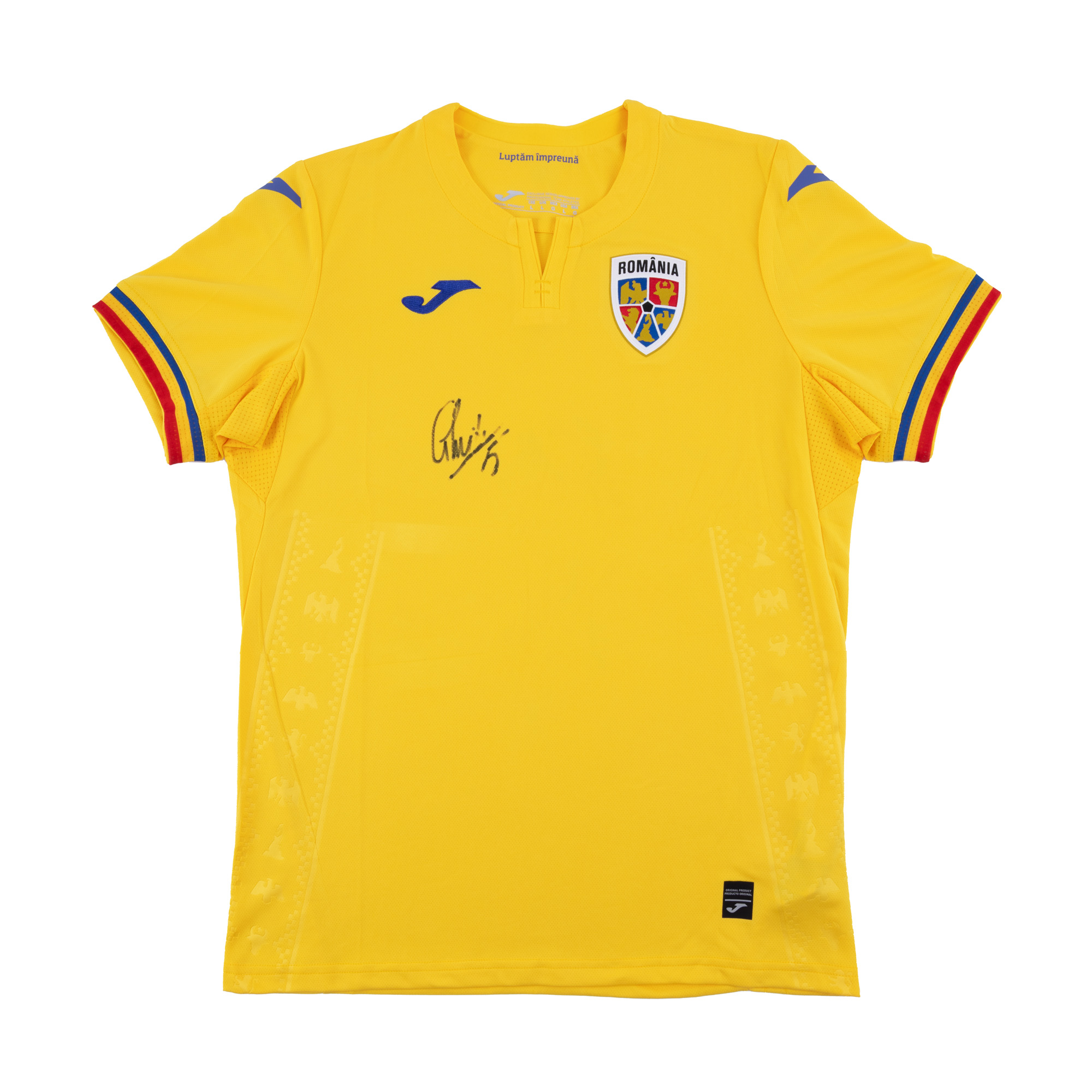 66. "Luptăm împreună!", tricou oficial al echipei naționale a României, cu semnătura olografă a lui Virgil Ghiță