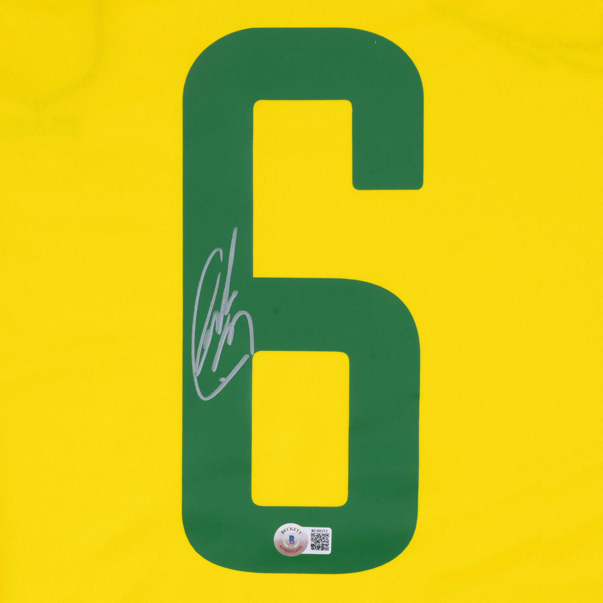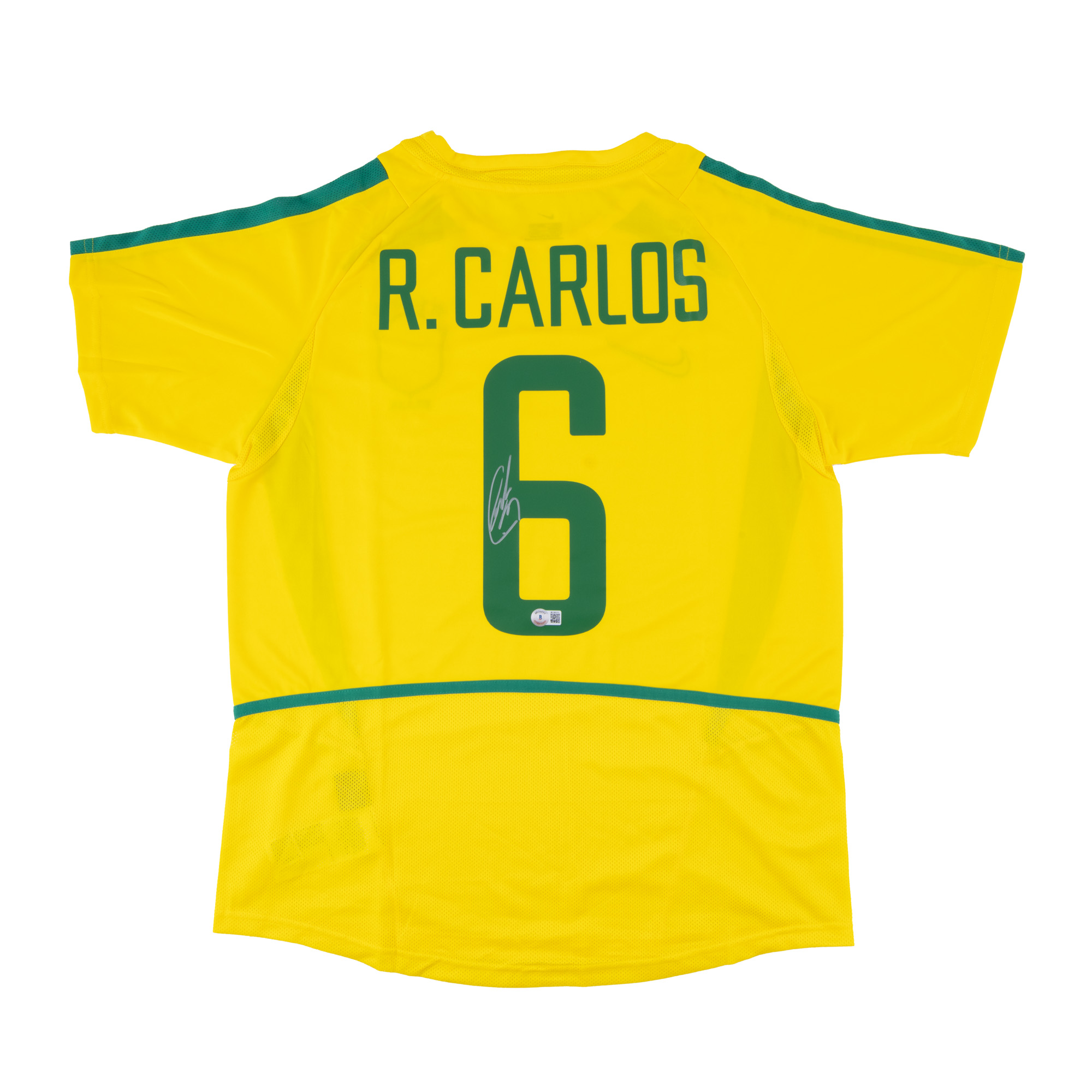 107. Tricou al echipei naționale a Braziliei, cu semnătura olografă a lui Roberto Carlos