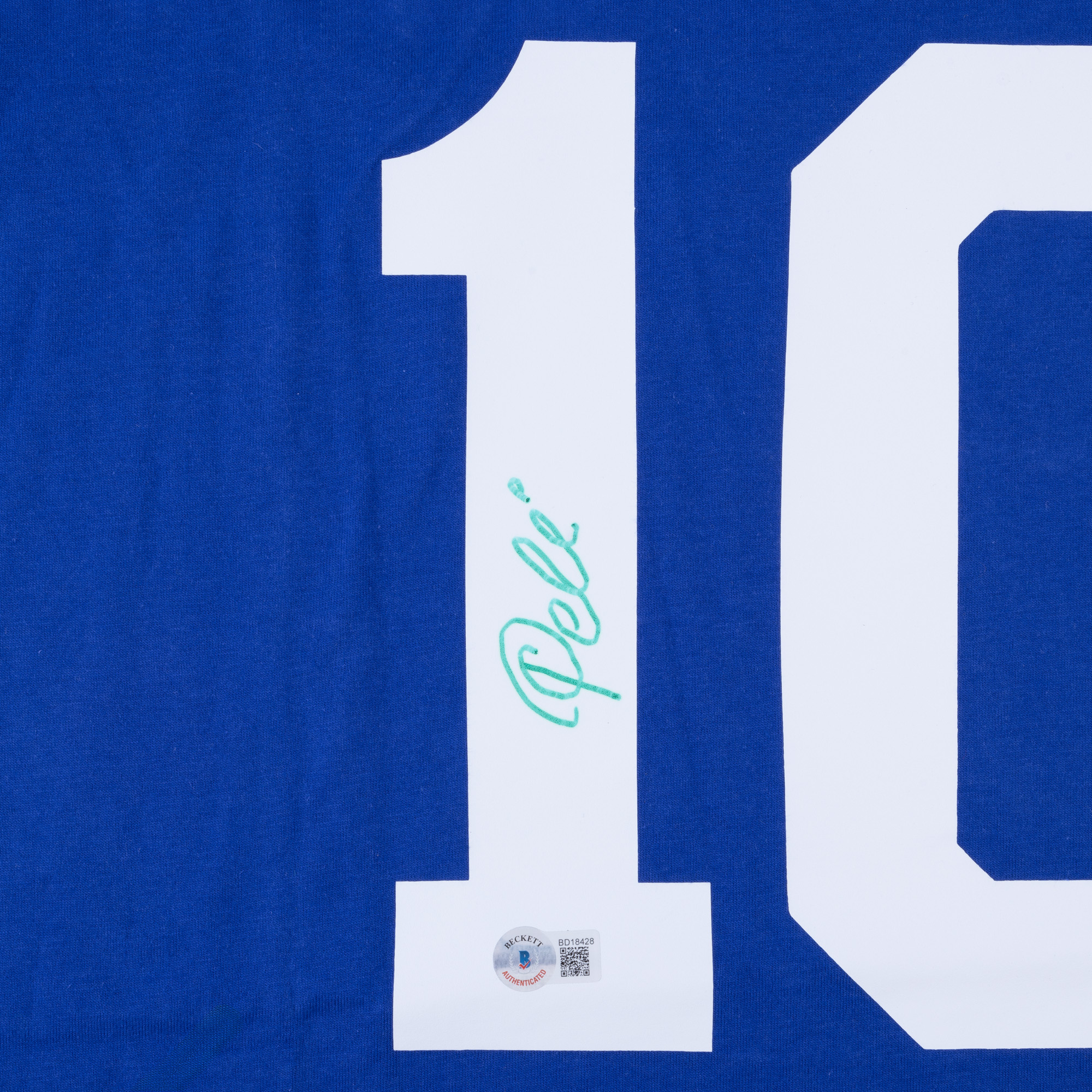 15. Tricou al echipei naționale a Braziliei, pentru meciurile în deplasare, cu semnătura olografă a lui Pele