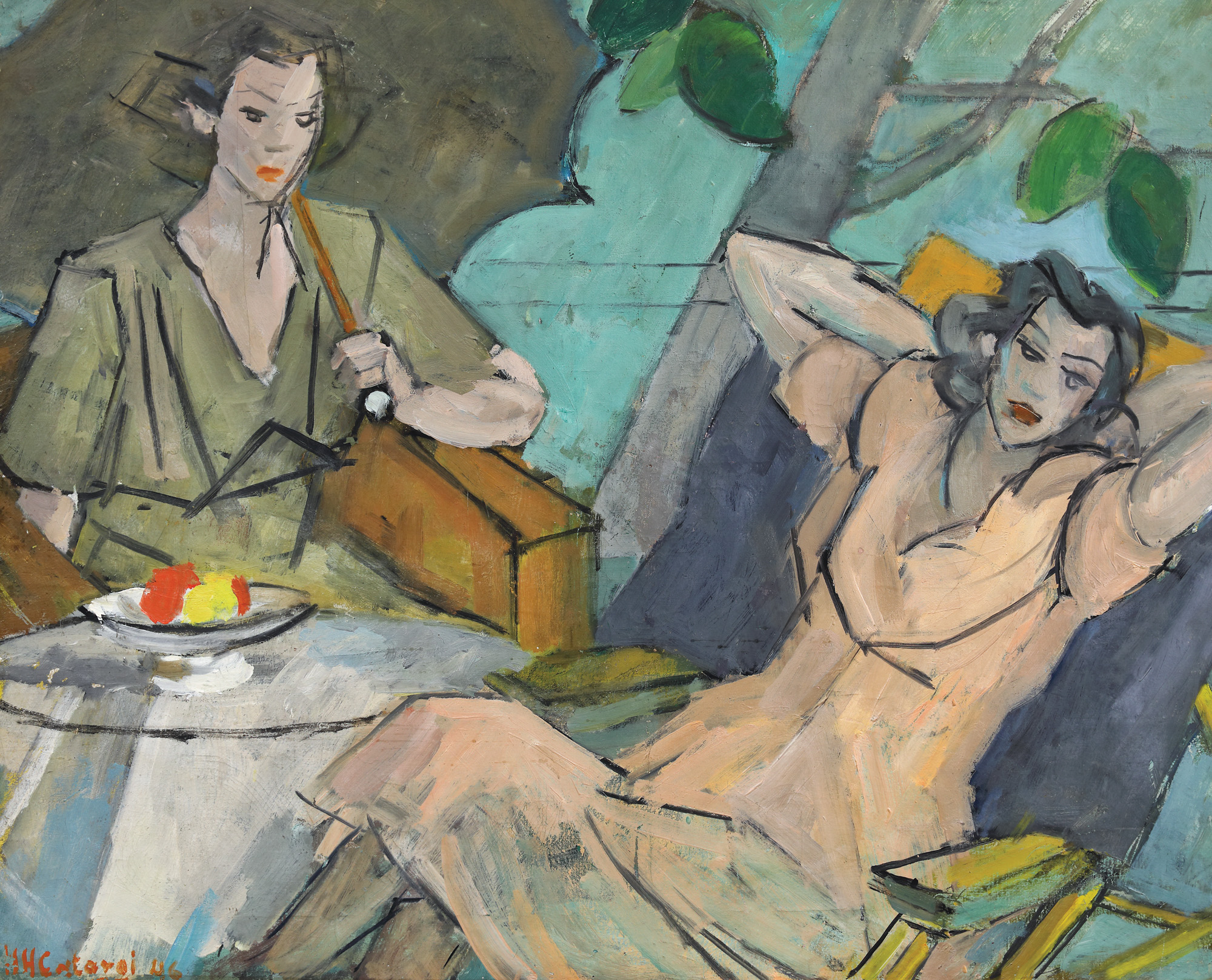 semnat și datat stânga jos, cu oranj, ”H.H. Catargi, (19)46”
