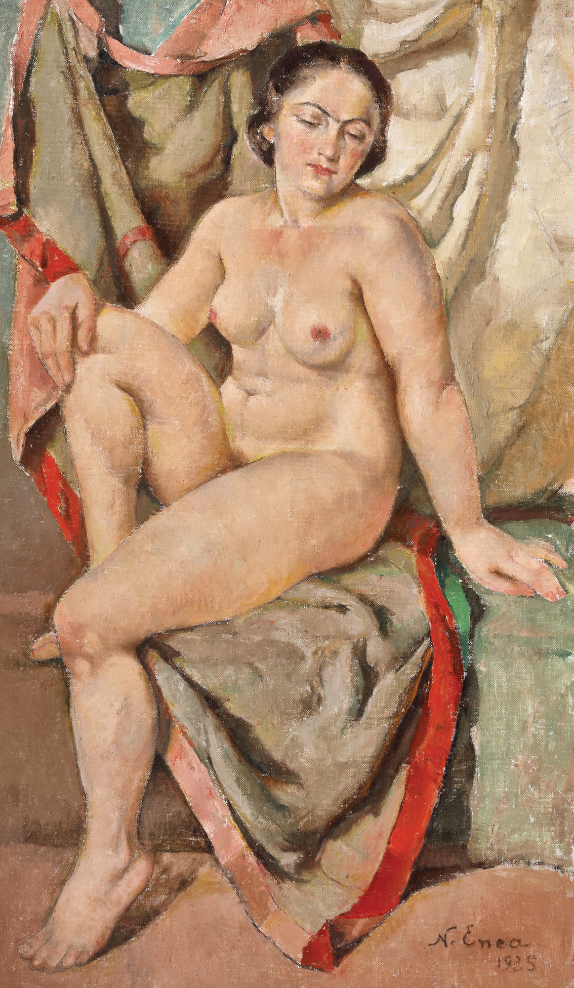 semnat și datat dreapta jos, cu brun, "N. Enea, 1935"