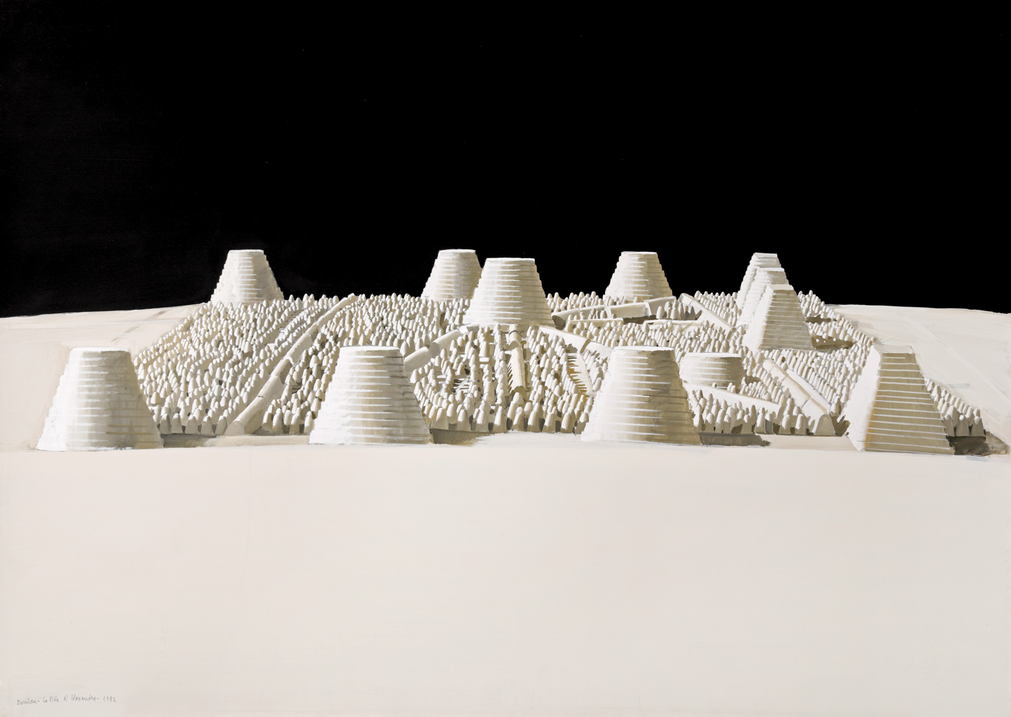 O variantă a operei este reprodusă în albumul „Horia Damian", publicat cu ocazia expoziției de la Muzeul Național de Artă Contemporană, București, septembrie - octombrie 2009. Opera face parte din ciclul „Proiect pentru San Francisco”, conceput de Horia Damian în anul 1978, la inițiativa Institutului de Artă din San Francisco. În 1982 schițează macheta operei „Orașul lui Alexandru”, pe care o încheie în cursul verii. O variantă a operei a participat la expoziția ”Centenar Horia Damian”, Biblioteca Academiei Române, București, 2022 și este reprodusă în catalogul dedicat expoziției.