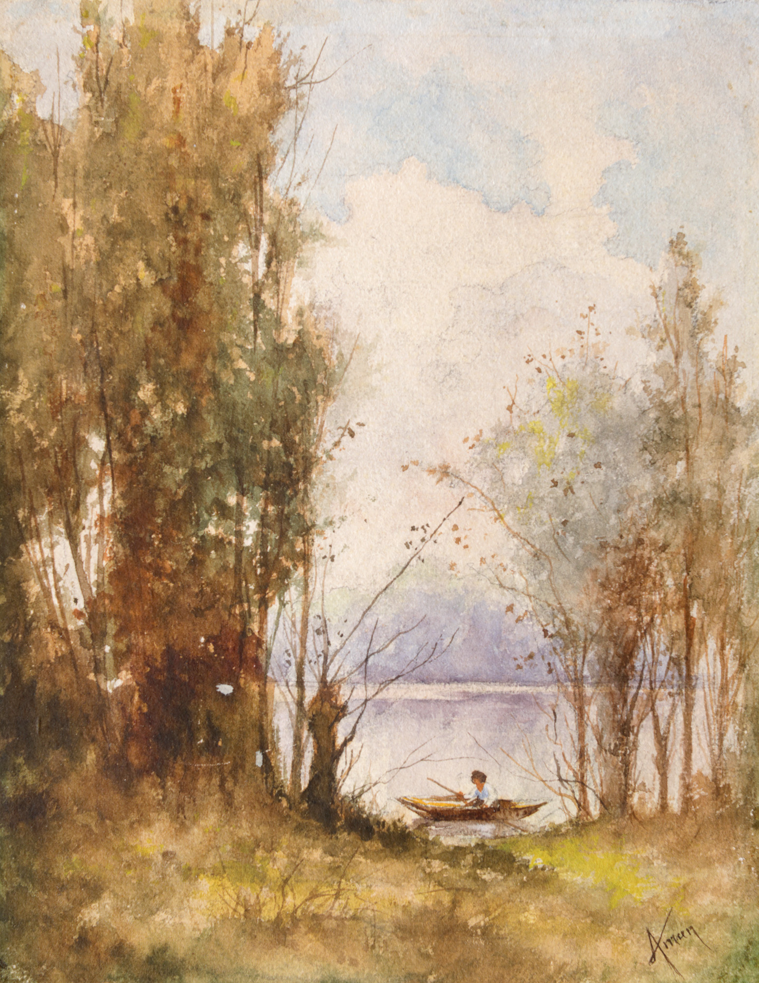 Rădăcinile orientării academiste din operele lui Theodor Aman pot fi identificate în creațiile maeștrilor săi, Constantin Lecca sau Barbu Iscovescu. Va prelua linia sigură promovată de aceștia depășind stagiul imitativ și va excela, indiscutabil, în toate genurile abordate. În portrete, Aman se concentrează pe sublinierea trăsăturilor morale ale protagoniștilor săi, iar în tablourile istorice va izbuti să reitereze rolul eroului în acțiunea tumultoasă. Artistul a acordat, în a doua parte a creației sale, o atenție deosebită peisajului. În această din urmă etapă a operei sale, marcată de încercări și experimente, Theodor Aman se detașează de pregătirea realist-academistă și preia din caracteristicile specifice picturii în plein-air. Nu adoptă întru totul maniera impresionistă, însă dezvoltă tehnici de cartografiere a luminozității și își însușește o paletă cromatică mai senină. Bogate în detalii, peisajele lui Aman păstrează nota socială – marcă proprie a stilului artistului. Conceptualismul idilic al peisajelor sale apare în contrast evident cu prima etapă a creației, de factură istorică. În ultimele două decenii, opera artistului va cunoaște un orizont creativ mult mai larg și renunțarea la rigorile impuse de academism. Este etapa în care se detașează de atelier și se familiarizează cu problematicile pe care le presupune pictura în aer liber. Fie că sunt transcrieri ale parcurilor din București sau reproduceri ale colțurilor din propria sa grădină, lucrările specifice acestei perioade posedă dimensiuni reduse și sunt încununate, adesea, de prezența umană. În creația artistului identificăm adesea transcrieri ale curților interioare, cu precădere ale grădinii sale care întregea în trecut spațiul casei devenită astăzi muzeu. Curtea cu spațiile sale verzi, cu arbori înalți și iarbă verde, măsuțele și scaunele, poarta sau statuile ne introduc adesea în atmosfera intimă a vieții pictorului. Acesta își îndreaptă atenția către natură cu fiecare punere în peisaj a emoțiilor sale celor mai profunde. În mijlocul florilor, al ierbii și al copacilor, distingem uneori figura umană. Aman surprinde omul plimbându-se prin parc sau stând în barcă, gata să pregătească năvoadele pentru pescuit. Înzestrat cu măiestria cronicarului istoric, pictorul creează peisaje care devin adevărate mărturii ale epocii sale. (D.C.)