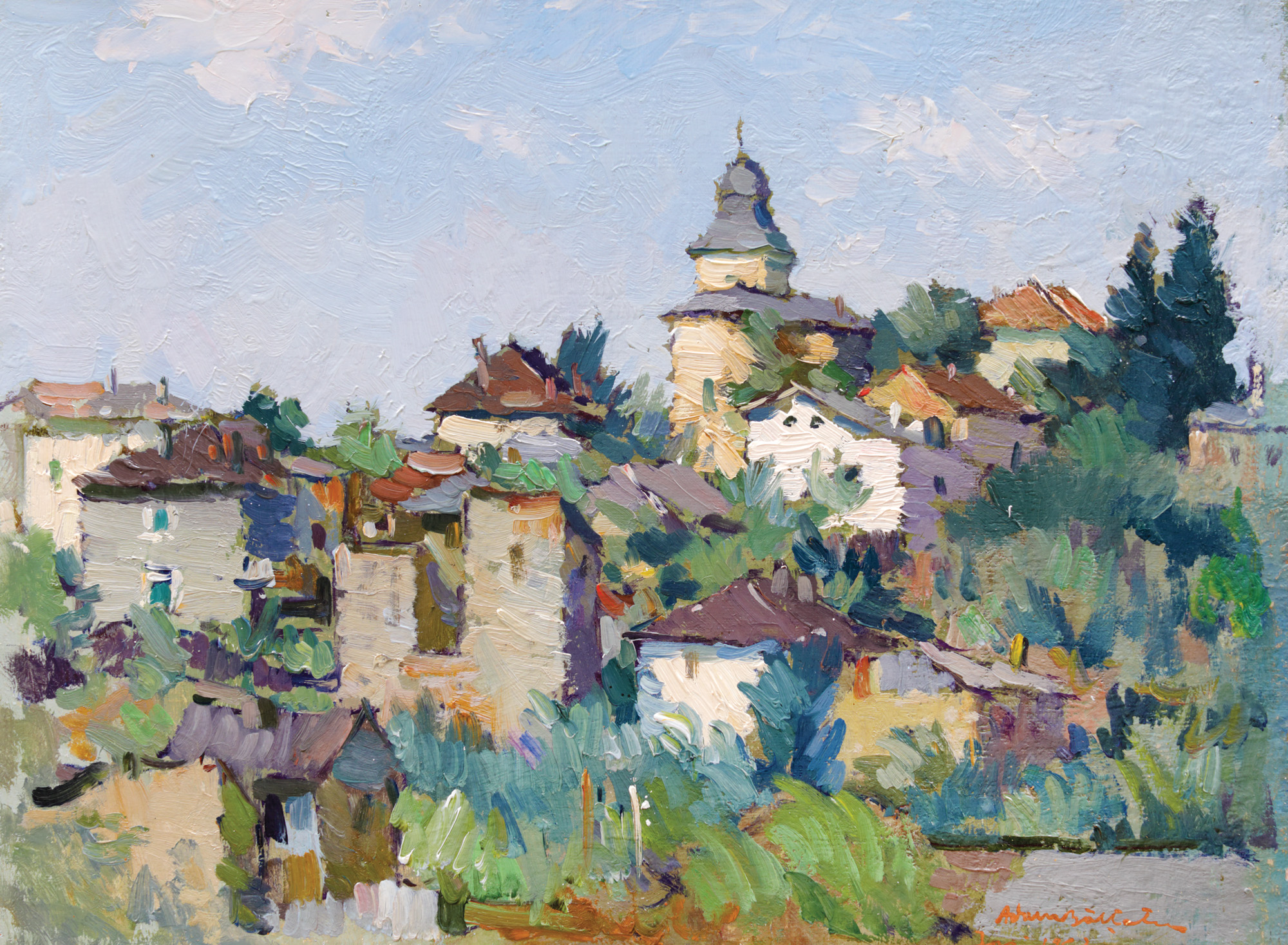 semnat, datat și localizat dreapta jos, cu oranj, "Adam Bălțatu, Iași, 1963"