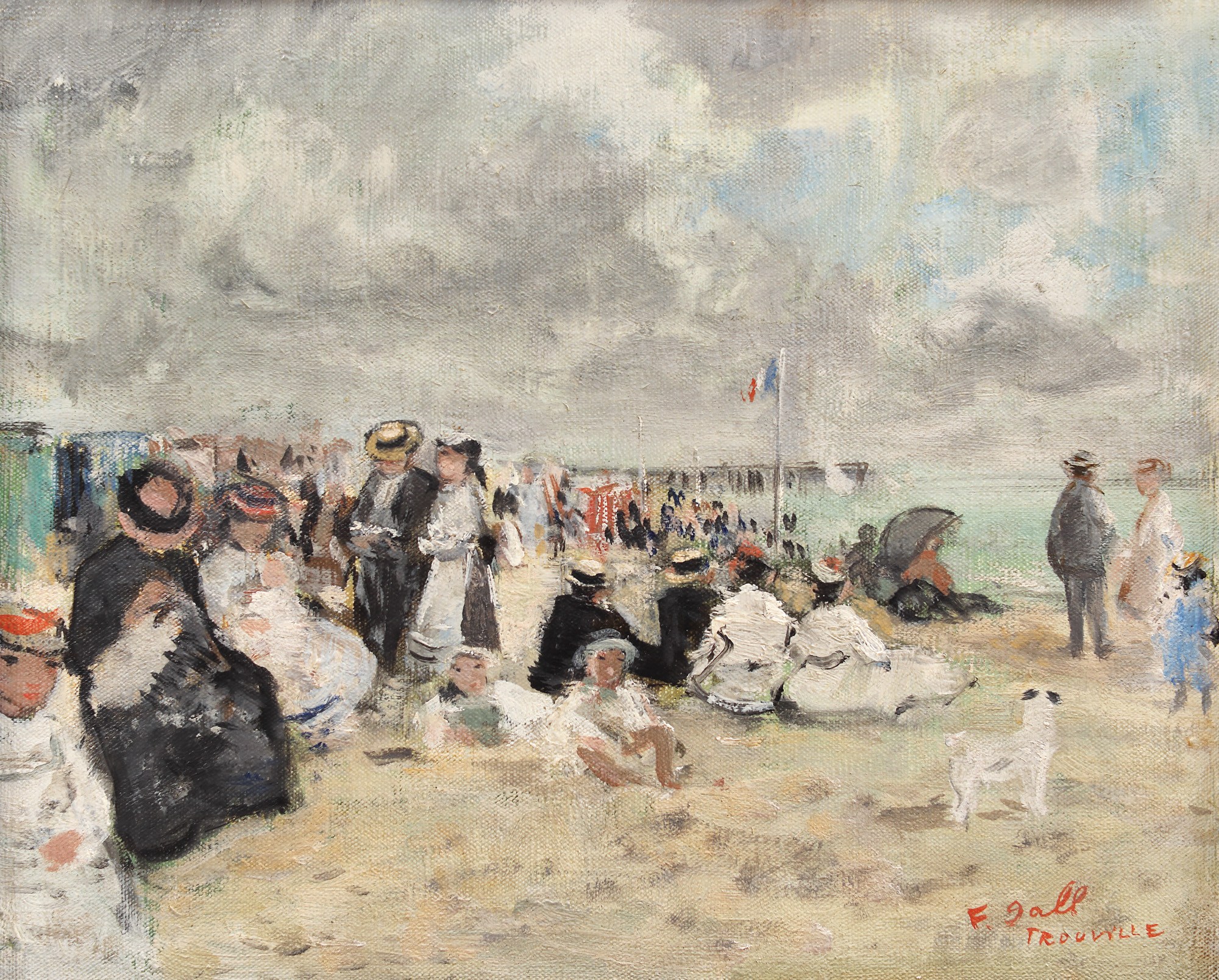 semnat și localizat dreapta jos, cu roșu, ”F. Gall, Trouville”