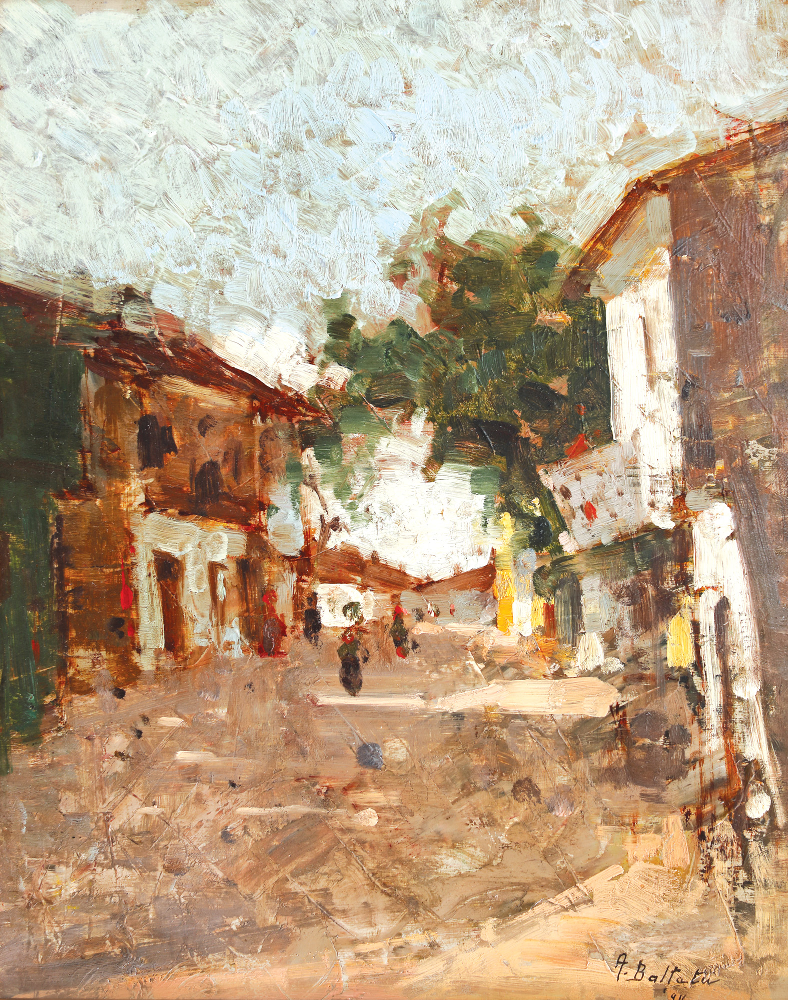 semnat și datat dreapta jos, cu negru, ”A. Bălțatu, (1)916”