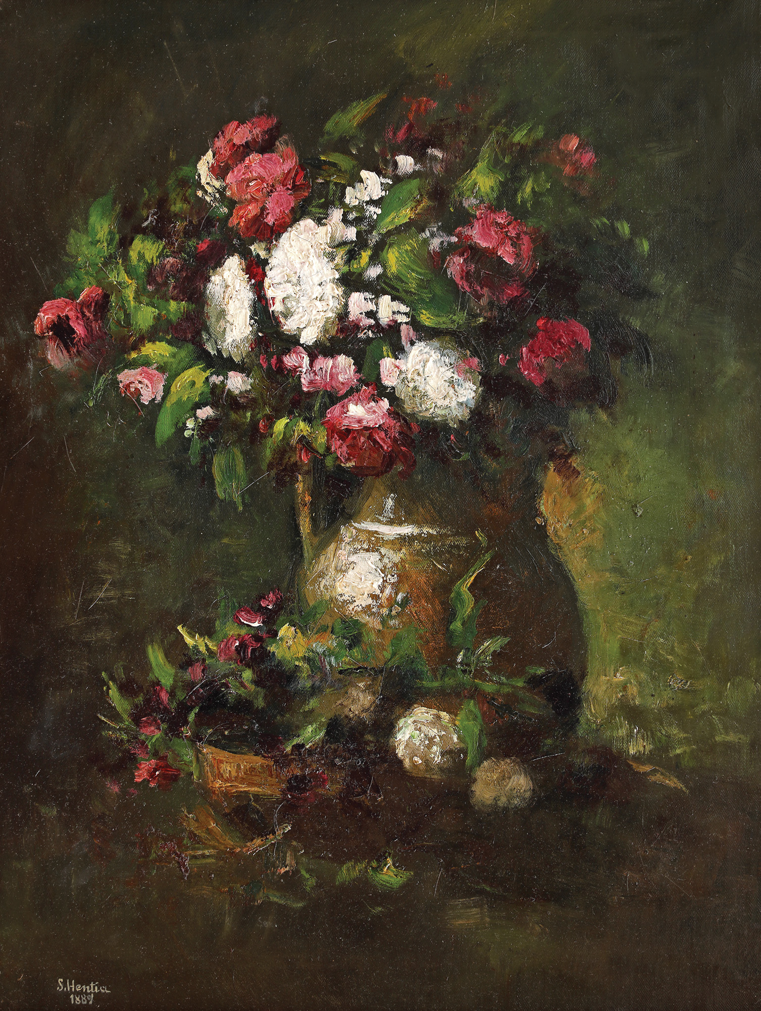 semnat și datat stânga jos, cu alb, ”S. Henția, 1889”