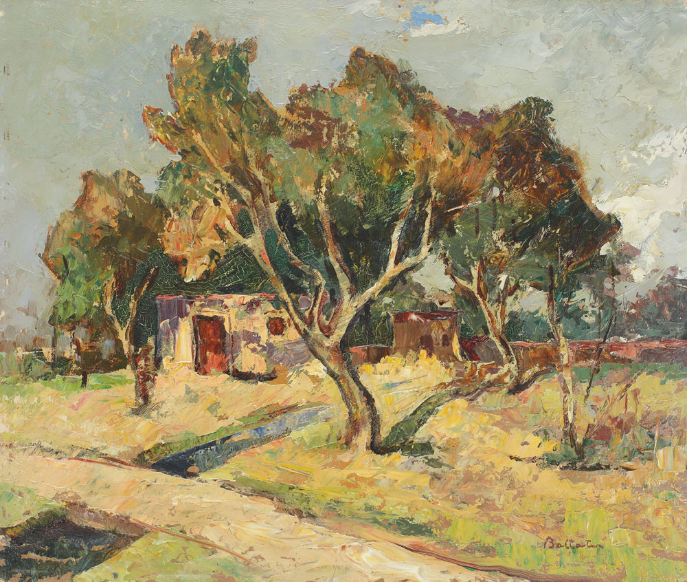 Adam Bălţatu redă prin lumină şi culoare atmosfera caldă a verii în peisajul său de Provence. Fiind un adept al picturii în aer liber, Bălţatu a reuşit să capteze cu acurateţe autenticul locului şi al atmosferei resimţite, fiind celebru pentru materializarea talentului său prin arta sa de a picta peisaje. Bălţatu alege tonuri calde de gălbui şi verde care predomină în tablou. Acestea sunt aerisite de seninul cerului văratic, în acord cu întreg câmpul chromatic ales pentru această compoziţie. Culorile mângâie şi îmbie privirea, punţile cromatice fiind calme, redate în pensulaţie lină. Prin tehnica sa firească, simplă, domoală, artistul se arată demn de a capta în imagine pitorescul naturii şi al locului. Peisajul capătă rimticitatea şi dinamica naturale, aşa cum există în natură, prin elementele redate în compoziţie. Privitorul este întâmpinat în câmp visual de prezenţa unui copac falnic şi solid, ce echilibrează peisajul şi conferă esenţă mesajului transmis de întreaga compoziţie. Copacul protejează casa ţărănească, simplă şi sărăcăcioasă, de pe marginea potecii şi, în acelaşi timp, invită privitorul la explorarea mai adâncă a peisajului provencal. Atmosfera cuminte şi blândă se datorează luminii calde, care nu arde, ci mângâie. Confortul îmbietor al atmosferei de acasă transpare din lucrarea lui Adam Bălţatu, sentiment amplificat prin simpla redare a caselor în peisaj, nealterate de prezenţa umană. Energia vitală a naturii şi îmbierea verii transpar şi conving privitorul despre marea măiestrie de peisagist a lui Adam Bălţatu.