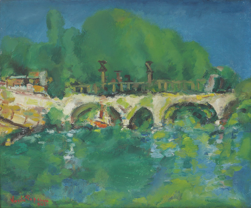 Cine a fost Vasile Popescu ne spune de fapt pictura lui. Martoră sensibilă la neliniştile interioare şi la bucuriile creatorului său, capabilă să dea formă concretă manifestărilor unei personalităţi retrase, singuratice, arta lui Vasile Popescu se situează în două categorii diferite: cea confortabilă pentru ochiul privitorului, construită pe simetrii, centre compoziţionale şi culori calde şi cea viguroasă, agresivă, în care forma este supusă fragmentării, iar culoarea, raporturilor violente. Deşi e dificilă justificarea artei lui Popescu prin aderarea la o anumită grupare artistică, creaţia acestuia nu poate fi înţeleasă fără a ţine cont de marile manifestări de artă la care artistul a participat, de călătoriile şi expoziţiile de artă românească organizate peste hotare, de Saloanele Oficiale sau de Saloanele de desen şi gravură, de manifestările grupului „Contimporanul”, „Grupul plastic 1934” şi „Grupul nostru”. Un rol deosebit în conturarea individualităţii lui Vasile Popescu l-a avut ataşamentul acestuia faţă de creaţia artiştilor care formau „Grupul celor patru”, în mod special faţă de aceea a lui Tonitza. Cu toate acestea, există în întregul univers creativ al lui Popescu ceva ce-l detaşează de contemporanii săi. Urmărind firul creaţiei acestuia de-a lungul anilor şi a câtorva cronici, desprindem dorinţa continuă a artistului de căutare a individualităţii prin exprimarea sinelui. Pe tot parcursul creației sale, arta lui Vasile Popescu a cunoscut câteva schimbări importante concretizate în patru diferite faze de creaţie. Expoziţiei din 1923, alături de Kimon Loghi, îi urmează 9 ani în care construcţia geometrică, simetria formelor, conturul accentuat al elementelo și, planurile distincte ale compoziţiei marchează o primă perioadă caracterizată prin numeroase încercări, căutări, prin teama de a nu greşi, specifică celor la început de drum şi tenacitatea de a se afirma ca pictor, în faţa familiei şi a publicului. În tematica acestor ani regăsim interesul ocazional pentru folclorul românesc, pictând naturi moarte cu ulcioare, străchini sau interioare ale caselor din zona Moldovei şi a Transilvaniei şi predilecţia pentru peisajele citadine ce se va manifesta pe parcursul celoralte etape de creaţie. Participarea la salonul Oficial din 1932, cu trei lucrări – două imagini ale Bucureştiului şi o natură moartă cu evidente note de picturalitate – anunţa trecerea artei lui Vasile Popescu către o nouă fază caracterizată de tuşe libere şi un stil orientat către decorativism. Critica vremii a remarcat în această secundă perioadă, un aspect umoristic al creaţiei lui Popescu şi o apropiere faţă de stilul lui Dufy şi de cel al fovismului. Anii 1937-40 indică cea de-a treia fază, echivalentă cu îndrăznelile, pictorul lăsându-se pradă picturalităţii. La Paris, cu ocazia Expoziţiei Internaţionale din 1937, critica franceză îl compară cu Braque şi cu operele sale de factură fovistă. Căutările încetează, ezitările se temperează, liniile devin sobre iar preocuparea pentru formă devine o constantă mutată în sfera ideilor. Aceasta este ultima perioadă de creaţie a lui Vasile Popescu (1940-1943), în care preferinţa pentru tematica peisajelor citadine rămâne neschimbată. Din această ultimă etapă datează şi opera „Pod peste Sabar” (1942), un peisaj în care nu arhitectura interesează pe artist, ci un element în desfăşurare, aproape acoperit de vegetaţia înconjurătoare. Tema reflectării în apă, predilectă în ultimii ani de creaţie, nu este de această dată reluată pe deplin. Cele două planuri – real şi al iluziei nu se confundă: apa tulbură formele podului reflectat pe suprafaţa acesteia, dând materiei picturale o uşoară transparenţă şi fluiditate. Doar tonurile de albastru de cobalt şi de verde smarald mai contrastează prin opacitate, oferind o notă de mister şi dramă.