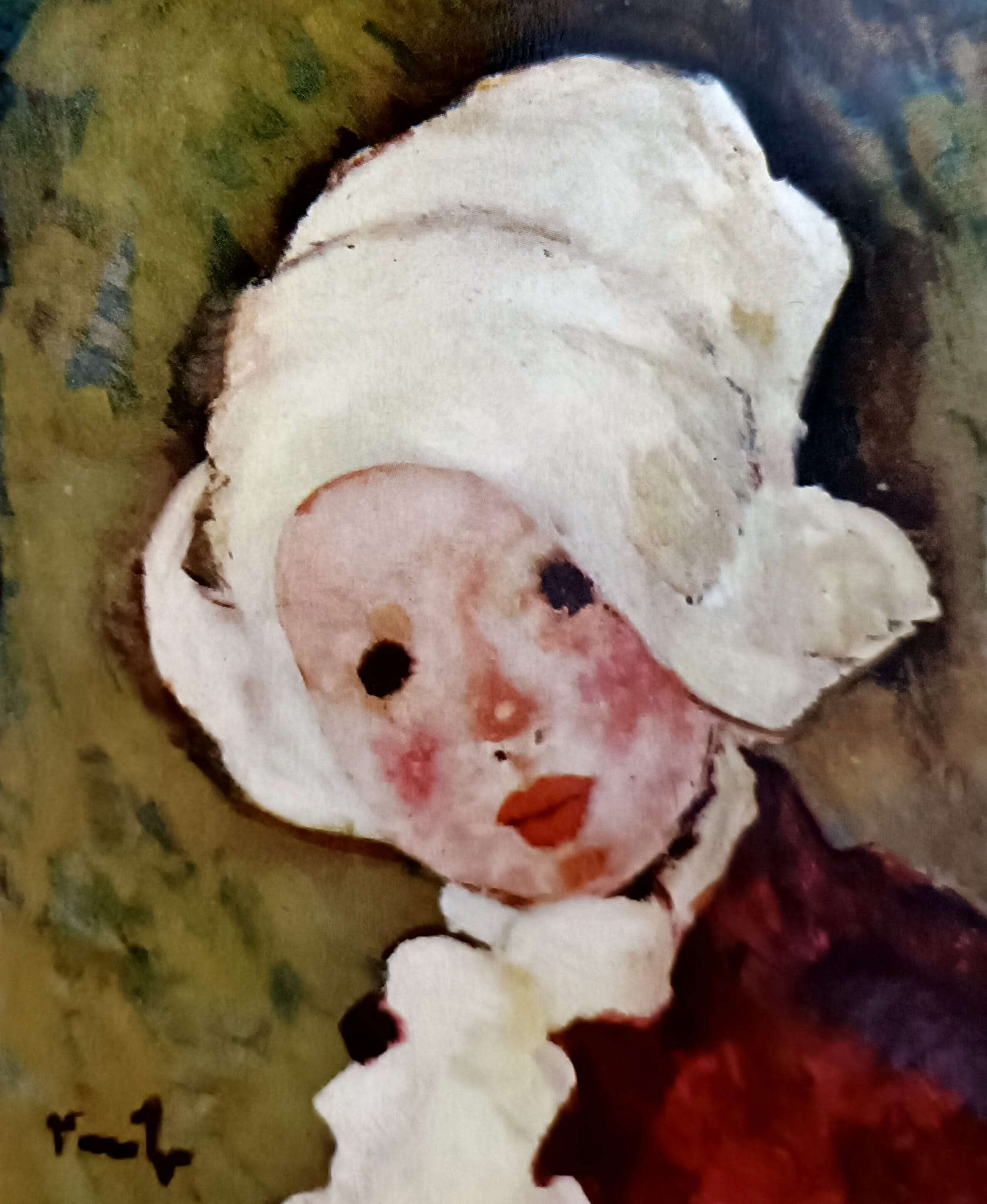 Acordă o atenție deosebită subiectului copiilor în cadrul lucrărilor sale începând cu anul 1924, când va începe să se concentreze mai mult pe realizarea unei incursiuni meditative în tema copilăriei. Principalul izvor de inspirație creativă vor fi chiar cei trei copii ai săi pe care va reuși să-i surprindă din copilărie până la maturizare servindu-i acestuia ca și modele în cadrul mai multor lucrări, unde câteva exemple în acest sens sunt: ,,Copil în roșu”, ,,Fată în interior” sau ,,Fetiță cu fundă în păr”. Printre micile sale muze feminine pe care le surprinde le regăsim pe Catrina și pe Irina, fiicele sale sau pe Nineta, nepoata sa, care de cele mai multe ori, acestea sunt reprezentate citind, așezate sau jucându-se. Vârsta preșcolară e acoperită mai cu seamă de portretele feminine. Tonitza le atribuie micilor muze diverse elemente decorative: fundițe, bonete, baticuri sau rochițe pe care le studiază atent și le detaliază amănunțit în operele sale. Cele mai multe dintre portretele sale includ un singur chip, deoarece artistul dorește să se concentreze mai mult asupra unei singure figuri umane și își alocă un timp suficient pentru a-i surprinde atât fizionomia, cât și întreaga psihologie a modelului reprezentat, cum este și lucrarea de față ce se concentrează pe surprinderea chipului unei mici bretone care este reprezentată din semiprofil și care nu se uită către privitor. Personajul poartă pe cap o bonetă albă, alături de o ținută verde și cu o fundiță roșie prinsă în piept. Astfel după modul de reprezentare a modelului, putem deduce, că acesta este unul dintre persoanele apropiate artistului, datorită stilului și modului de creație. Tonitza pictează chipuri lipsite de expresivitate, cu ochii care debordează de o inocență nostalgică, sau ochii care privesc cu melancolie și candoare. Prezintă chipul drept un microcosmos asupra căruia intervine, atunci când este cazul, cu amănunte specifice și cu o atenție deosebită asupra detaliilor.