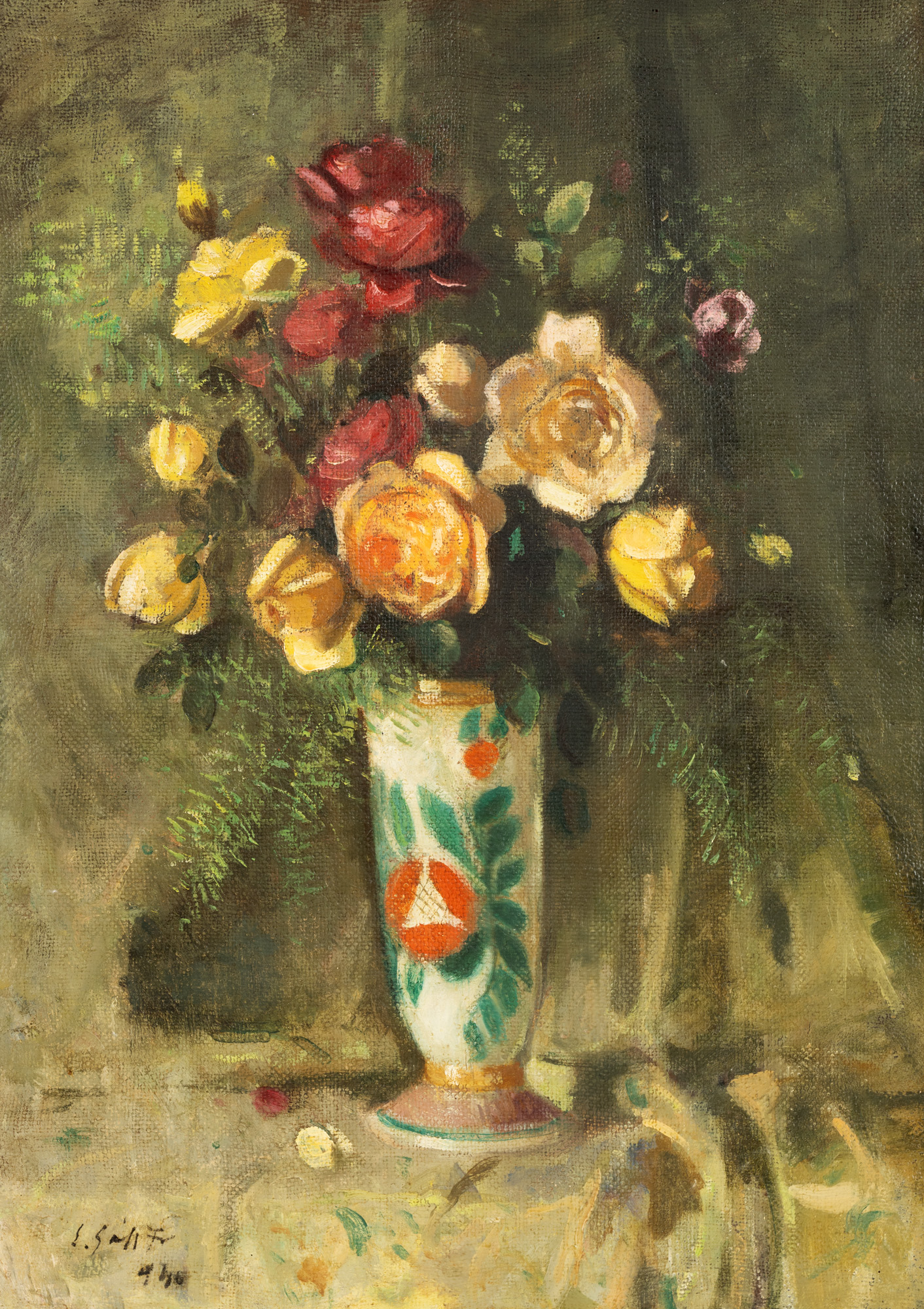 semnat și datat stânga jos, cu negru, ”E. Gall F., (1)946”
