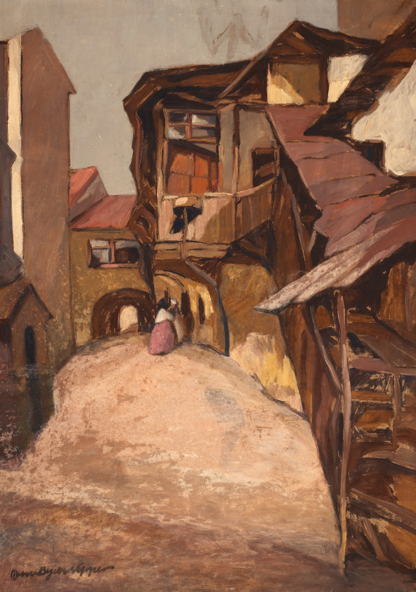 semnat stânga jos, cu brun, ”MinaByckWepper”