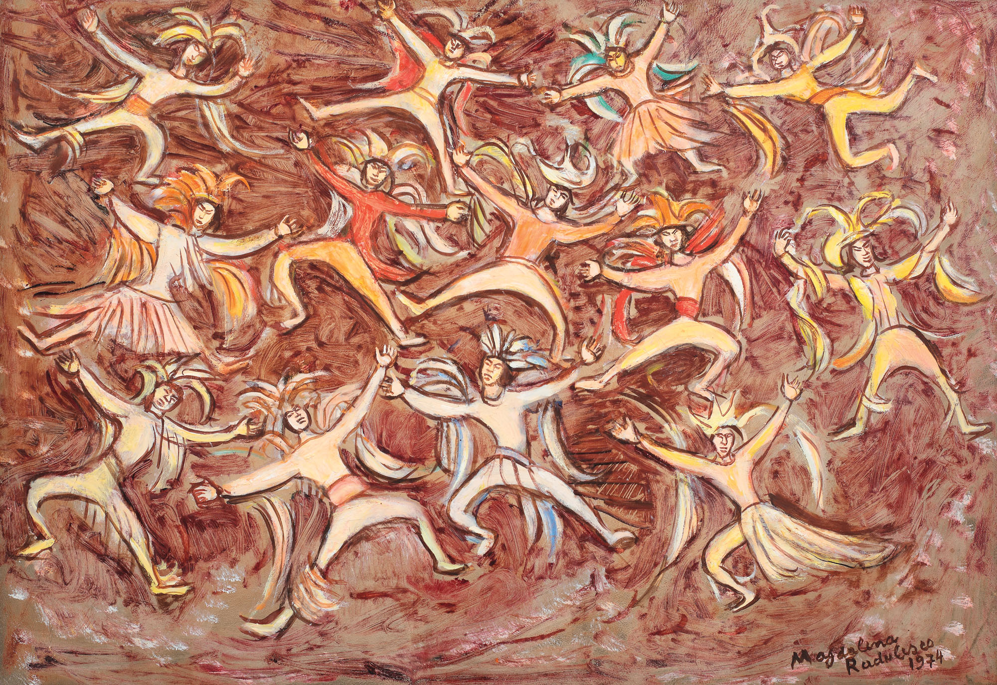 semnat și datat dreapta jos, cu brun, ”Magdalena Rădulesco, 1974”