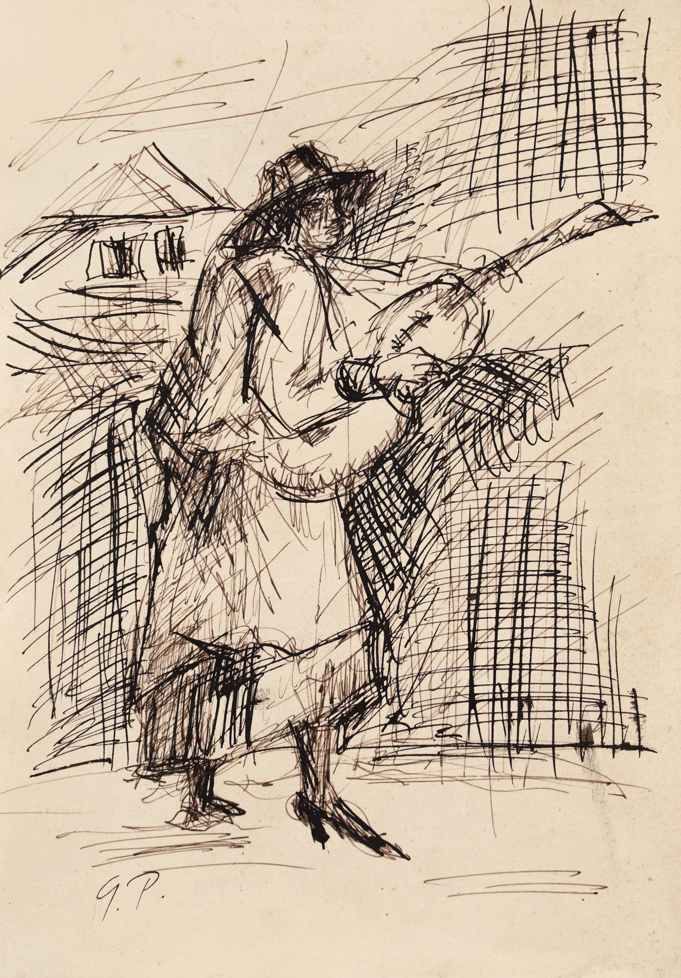 Opera este studiu în tuș pentru gravura "Chitarista" varianta V, acvaforte lucrat de Gheorghe Petrașcu pe parcursul anului 1932. Artistul avea să lucreze la 5 variante pentru ciclul "Chitariste", tușul de față fiind parte integrantă a acestui ciclu, doar că în varianta desenată.