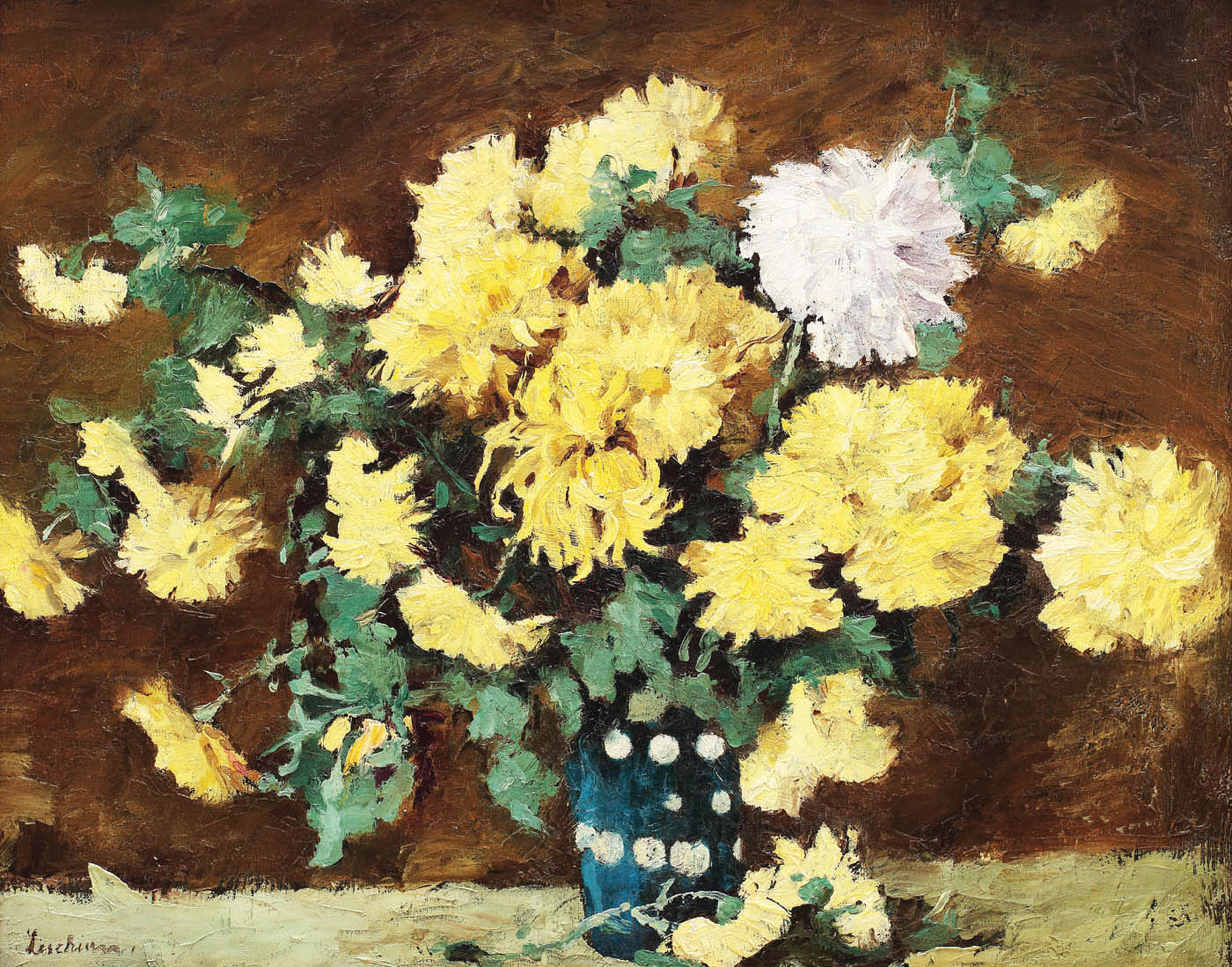 până în 1919, probabil colecția istorică a criticului de artă Virgil Cioflec (1876-1948), prieten și prim monografist al lui Ștefan Luchian; perioada interbelică, colecția istorică dr. Iosif Dona. În inventarul colecției Dona aflăm că o lucrare de Ștefan Luchian cu subiectul Crizanteme (operă neintrată ulterior în inventarul colecției naționalizate) intra în colecția doctorului în jurul anilor 1919-1920, în urma unui schimb făcut cu Virgil Cioflec pentru 1.000 de lei și 6 tablouri.