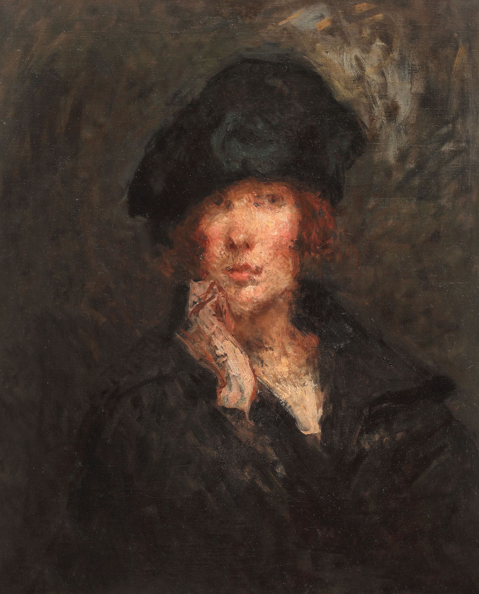 Școlit în atelierul parizian al lui Jean-Paul Laurens (1838-1921), artistul Eustaţiu Stoenescu își va desfășura activitatea creatoare în mare parte în Franța, unde va dobândi cele mai multe reușite și elogii. Cu un repertoriu tematic restrâns, concentrat în portrete, scene de gen, peisaje, naturi moarte sau flori, artistul va rămâne predispus unei dispoziții naturaliste continue. Printre cele mai tratate genuri se va regăsi portretul, căruia îi va rămâne fidel și în cadrul căruia va dovedi virtuți excepționale. Interesul său pentru figura umană va fi pus în evidență încă din anul 1913, când capacitatea sa de pătrundere a firii umane era expusă în opere precum: „Portretul scriitorului francez A. Rameau”, precum și în opere mai târzii ca: „C. Disescu”, „Portretul profesorului Jean-Paul Laurens”, „Levasseur”, „Miss McConnell”, „Mugnier”, „Ștefan Popescu”, „Matei Corbescu” sau „Eleganță”. (G.M.)