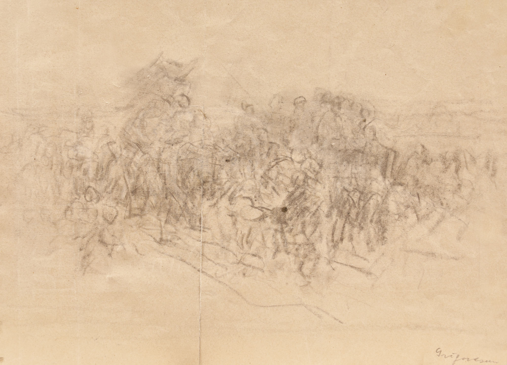 dreapta jos, autentificarea fiului artistului, "Desen original de pictorul N. I. Grigorescu, Gh. N. Grigorescu"; semnat dreapta jos, în creion, "Grigorescu"