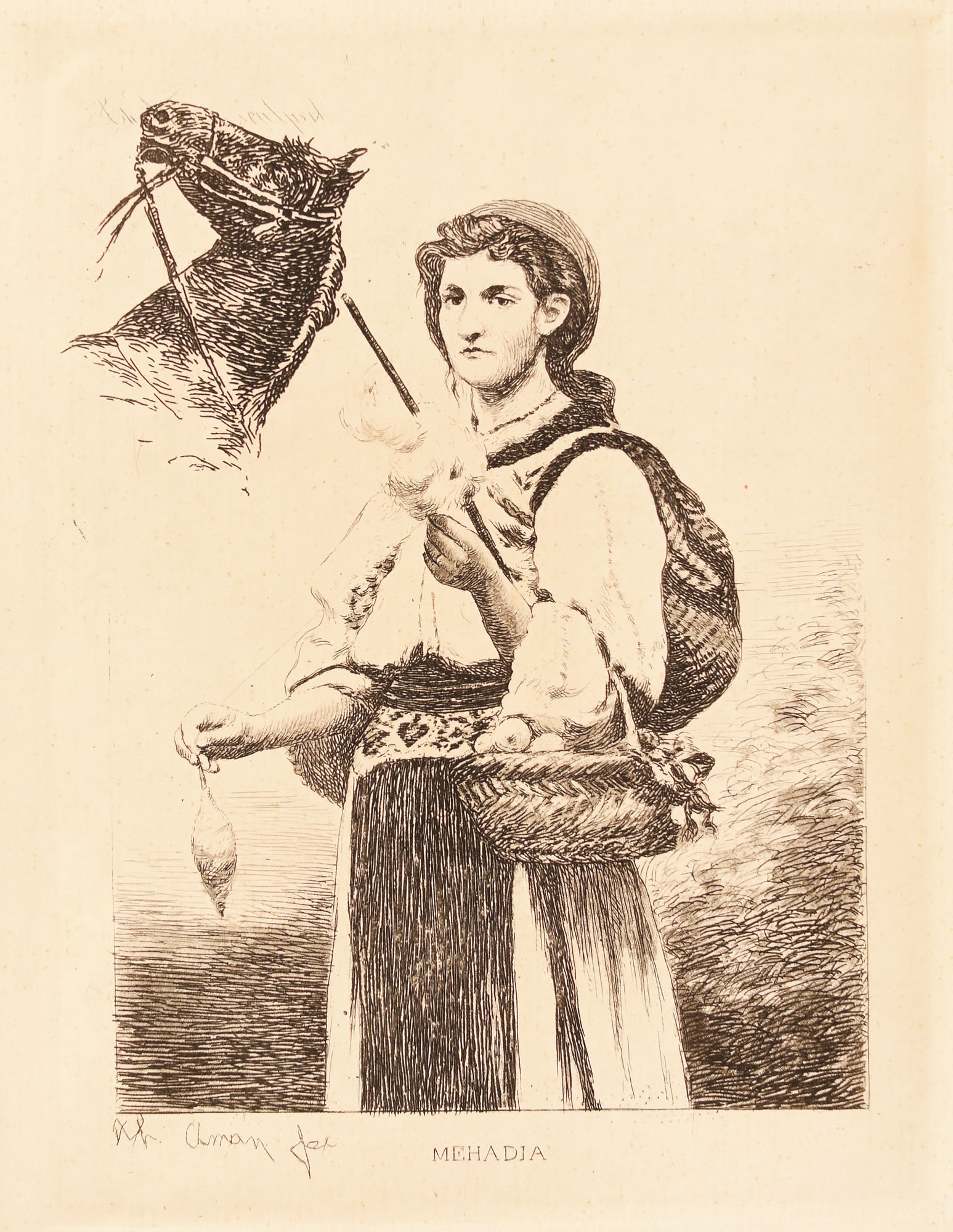 semnat, gravat, stânga jos, sub cadru, "Th. Aman fec."; inscripţie gravată central jos, sub cadru, "MEHADIA"; semnat, gravat stânga sus, în cadru, "Th. Aman sculpsit"