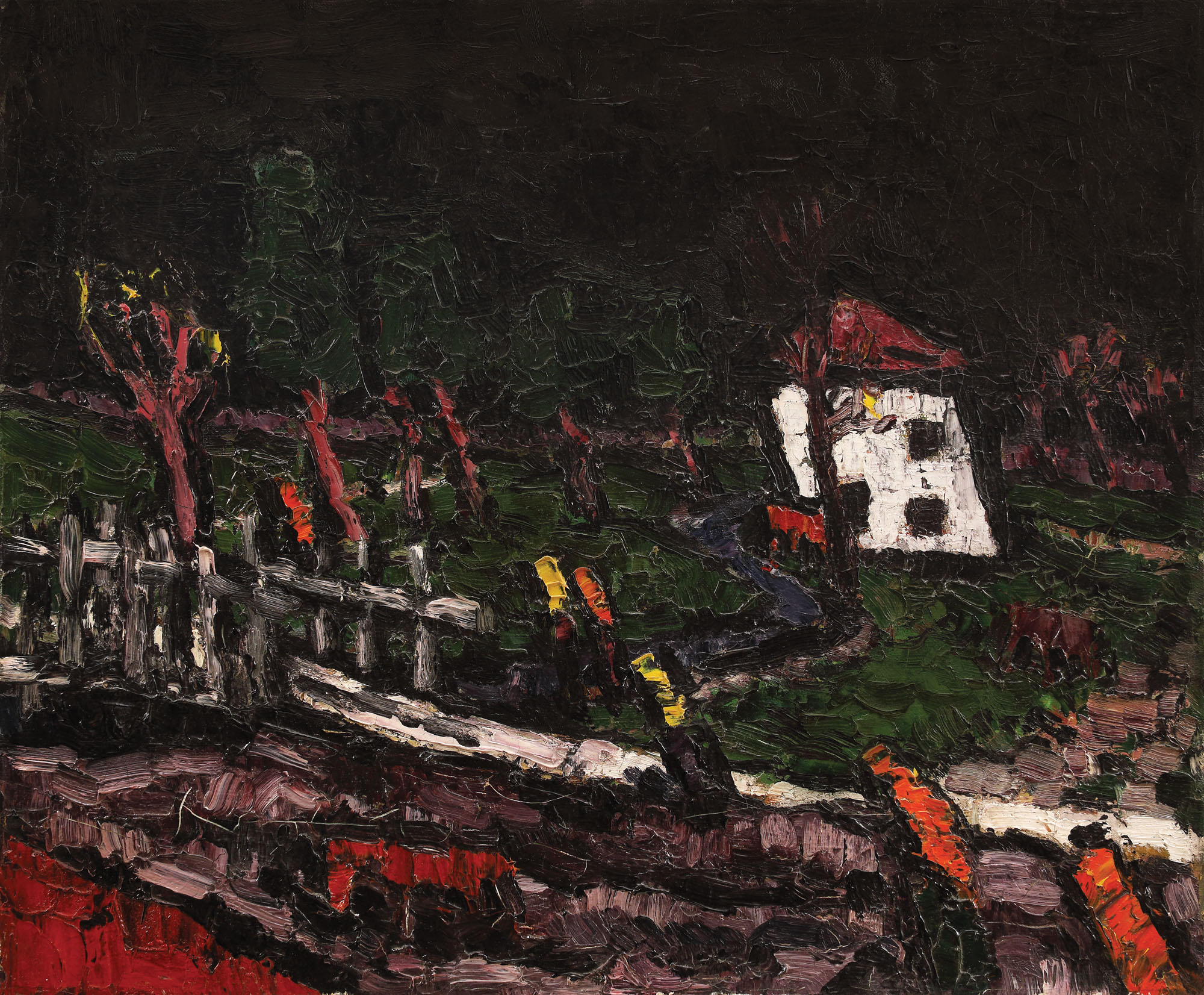Opera este reprodusă în monografia "Ion Țuculescu", Magda Cârneci, Ed. Meridiane, 1984 la cat. 12, sub titlul "Peisaj nocturn". Opera a participat la expoziția retrospectivă Ion Țuculescu, Sala Dalles, București, 1965. Opera este menționată și inventariată în catalogul expoziției retrospective Ion Țuculescu, Muzeul Național de Artă al României, București, 1999, la pag. 64, cat. 31, sub titlul "Peisaj nocturn". Opera este menționată și analizată în monografia "Ion Țuculescu", Petru Comarnescu, Ed. Meridiane, București, 1967 la pag. 20.