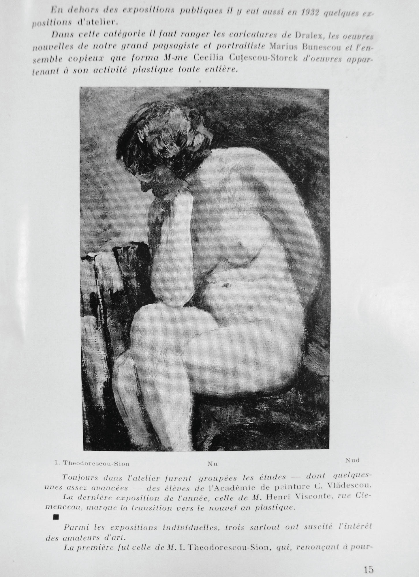 PAVEL, Amelia, "Ion Theodorescu-Sion", Meridiane Publishing House, Bucharest, 1967. SCHOBEL, Doina; CLONARU, Hariton, "Ion Theodorescu-Sion", Art Museum of the Socialist Republic of Romania, Bucharest, 1971.