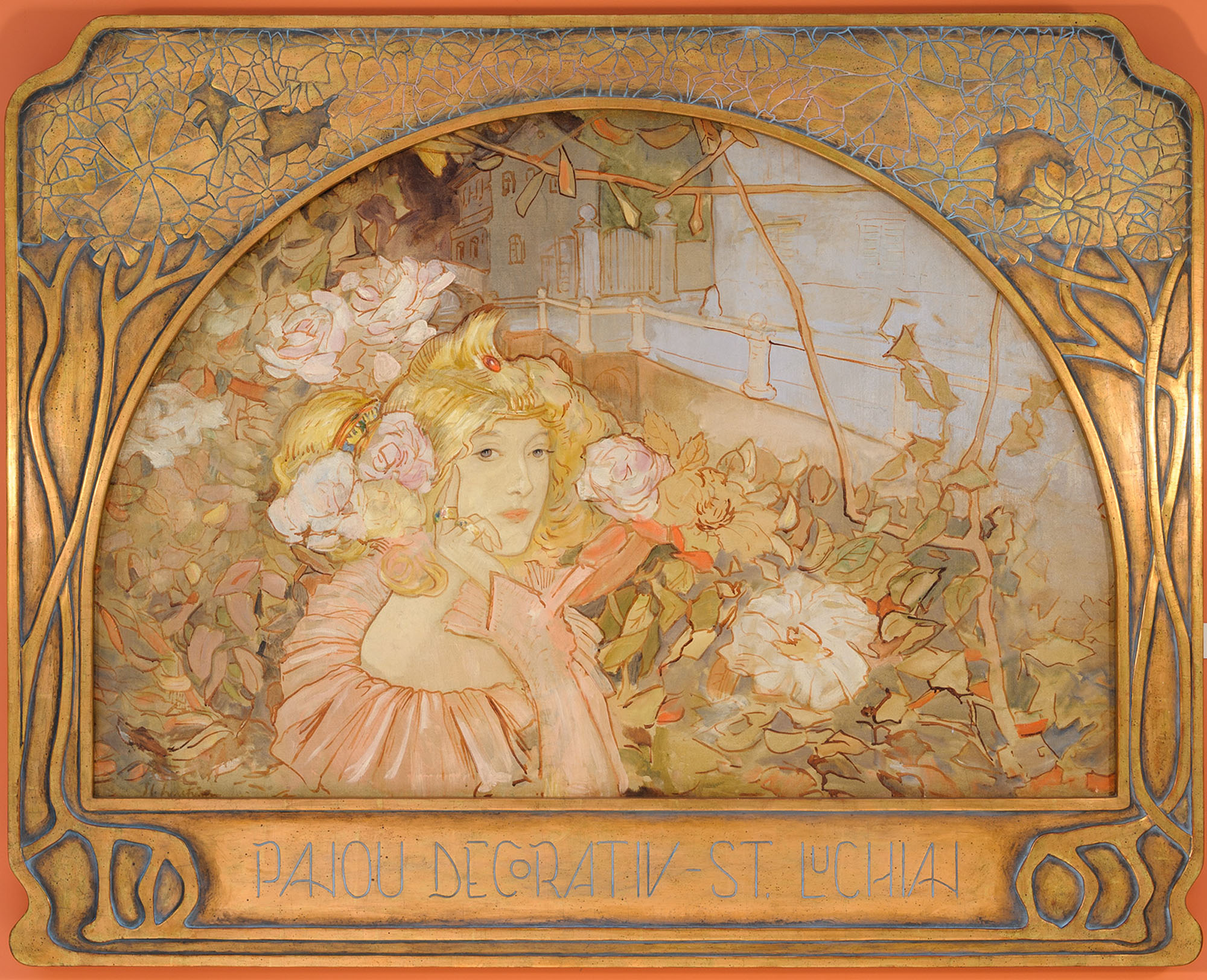 Elegantul traseu al liniilor sinuoase ca și încununarea ansamblului printr-un arc de cerc imprimă lucrării de față un esențial efect decorativ. În centrul compoziției, privind spre noi, o grațioasă figură feminină se ivește din faldurile unui guler elegant din mătăsuri albe, integrat precum un element floral, masei vegetale ce inundă imaginea. Coafura generos modelată a personajului devine motiv decorativ în sine atât prin ductul liniei cât și prin prezența simbolică a celor doi crini albi. Toate aceste aspecte emanând eleganță și rafinament se reunesc dând lucrării de față trăsăturile stilului Art Nouveau ce-și făcuse apariția către finele veacului al XIX-lea, descinzând din sensibilitatea simbolistă. Marcând artele plastice și decorative (mobilier, ceramică, sticlă etc) în lumea întreagă, în jurul anului 1900, stilul Art Nouveau cunoscut sub diversele lui apelațiuni - Art 1900, Modern Style, Jugendstil, Lo Stile Floreale - a reprezentat atunci vocabularul artistic nou, formula originală, mult așteptată la trecerea pragului în secolul al XX-lea. Lucrarea de față, o comandă concepută și realizată de Luchian la 1901, face parte dintr-o suită de panouri decorative1 - patru sau poate mai multe, reprezentând alegorii feminine (anotimpurile?) - destinate, se pare, să decoreze interioarele casei din strada Colței nr. 56 a avocatului și omului politic liberal, Victor Antonescu (1871, Antonești/Teleorman -1947, București)2. Comentariul istoricului de artă Theodor Enescu privind aceste panouri (inclusiv cel propus acum publicului) pune în evidență măiestria lui Luchian în conceperea decorativă a suprafetelor „ știința sa de a compune în ansambluri decorative grațioase, tipicele gracile figuri feminine ale sfârșitului de secol - cu pieptenăturile lor sofisticate, cu costumele pline de dantele, cu paftalele, bijuteriile și podoabele lor florale, cu convenționalele gesturi cochete - pe un fundal de tufișuri frunzoase, cu flori exuberante și o combinație scenografică de misterioase arhitecturi medievale.”3 Două dintre panourile în discuție aparțin Muzeului Național de Artă al României, cel intitulat Primăvara (inv.10577/104185) aflându-se în expunerea permanentă actuală a Galeriei Naționale și constituind astăzi marca de noblețe a primului muzeu de artă al țării.4 Luchian a elaborat pentru lucrările definitive, variante pregătitoare5, desene acuarelate (unele pe hârtie, unul pe mătase), ce trimit la rafinamentul graficii extrem-orientale - realizate cu o mare finețe a ductului liniei și a transparențelor culorilor de apă. Dintre aceste schițe, acuarela pe mătase (213 x 292 mm., Biblioteca Academiei Române, inv. 3486) este pasul pregătitor pentru panoul nostru, foarte aproape de lucrarea Toamna. În arta și în arhitectura românească, operele Art Nouveau propriu-zise nu sunt numeroase, dar ecouri ale acestei viziuni se întâlnesc adesea în jur de 1900, în special în artele grafice, în pictură, împletindu-se cu starea de spirit din arta simbolistă (se întâmplă în cazul textelor și a ilustrațiilor revistei Ileana între ai cărei fondatori și colaboratori se numără Ștefan Luchian). Reapărute în conștiinta publică occidentală către 1960-1970, după o lungă ignorare în timp, aprecierea amatorilor de artă și interesul istoricilor de artă pentru Art Nouveau și pentru simbolism renaște începând cu anii1960-1970. Bibliografia românească referitoare la opera lui Luchian înregistrează aceste schimbări de registru datorate atât modificărilor de gust cât și de perspectivă ideologică (Comarnescu, 1955; Enescu, 1974). Dată fiind scurta existență a momentului stilistic Art Nouveau în opera lui Luchian, în raport cu linia postimpresionistă ce-i este definitorie, ne putem întreba a cui va fi fost inițial, opțiunea estetică a lui Luchian sau a lui Victor Antonescu, atunci când a fost aleasă ca sursă de inspirație pentru panouri, grafica de tip Art Noveau a artistului simbolist Georges de Feure (1868-1943), franco-olandez contemporan cu Luchian, prețuit și cunoscut autor de afișe și decorator în Parisul finelui de veac. Semnalată de Paul Constantin (1972), amintită de Theodor Enescu (1974), această apropiere a fost analizată prin comparații detaliate între operele similare Luchian-de Feure, de către tinerii istorici de artă Monica Enache (2011) și Eduard Andrei (2011). Lucrările lui Georges de Feure le găsim reproduse în paginile unor reviste pariziene ale anilor evocați, precum Le Figaro Illustré. După cum preciza Eduard Andrei (2011), „tabloul Primăvara și schițele celorlalte „anotimpuri” sunt replici aproape fidele ale unei serii de patru lucrări în guașă executate în 1899 de Georges de Feure […]. Tipogravate în 1900 la atelierul Goupil din Paris, ele au fost reproduse în luna februarie a aceluiași an - sub titlul generic Figură de femeie între flori - în revista Le Figaro Illustré”.6 Desigur că atât artistul cât și comanditarul au fost marcați de gustul pentru această viziune, dominantă în ultimul deceniu al secolul al XIX-lea, cand amândoi se aflau la studii la Paris și imaginile semnate de Georges de Feure circulau devenind ca o amprentă a epocii. În plus, periodicele franțuzești (ziarele curente și revistele de artă și decorațiuni ) soseau și erau citite cu regularitate în înalta societate bucureșteană. În ceea ce privește tematica acestor panouri, se cuvine relevată opinia Monicăi Enache care se îndoiește de titlurile Anotimpuri, plecând de la numele lucrărilor de Georges de Feure din numărul deja citat al revistei Le Figaro Illustré ( nr.119). Cercetătoarea semnalează imaginile articolului „La femme par le Feure” ce pun în relief prin titlurile lor, specific simboliste, „dualitatea personalității feminine”: Experiența, Viciul versus Inocența
