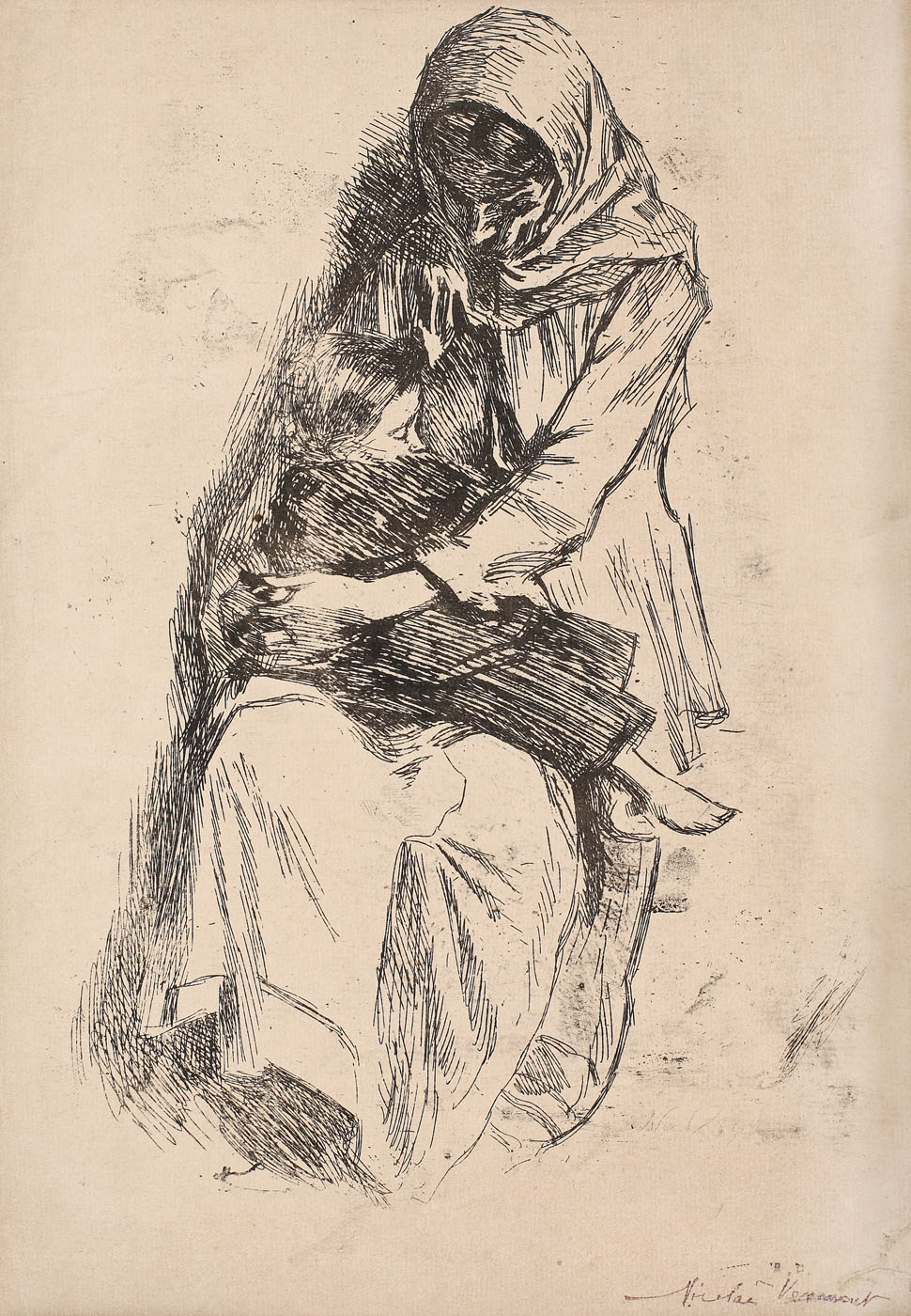 semnat, gravat, dreapta jos, "N.V."; semnat dreapta jos, cu sigiliul artistului, "N.V., A.D. Nicolae Vermont"