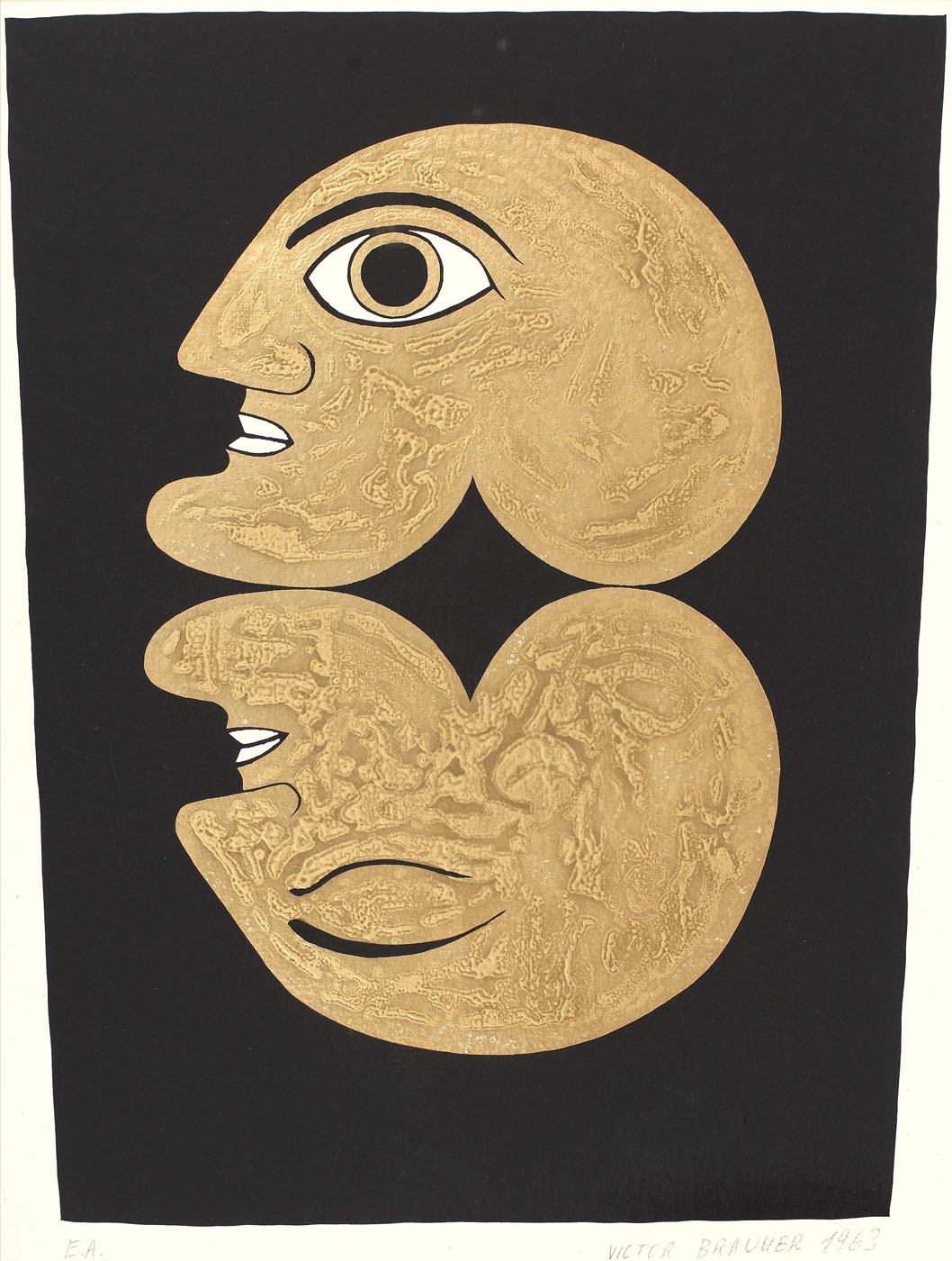 semnat şi datat dreapta jos, în creion, "VICTOR BRAUNER, 1963"; notat stânga jos, în creion, "E.A"
