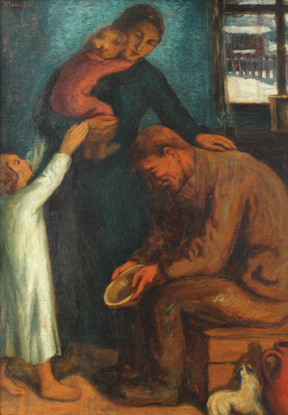 semnat stânga sus, cu brun, "Klein J"