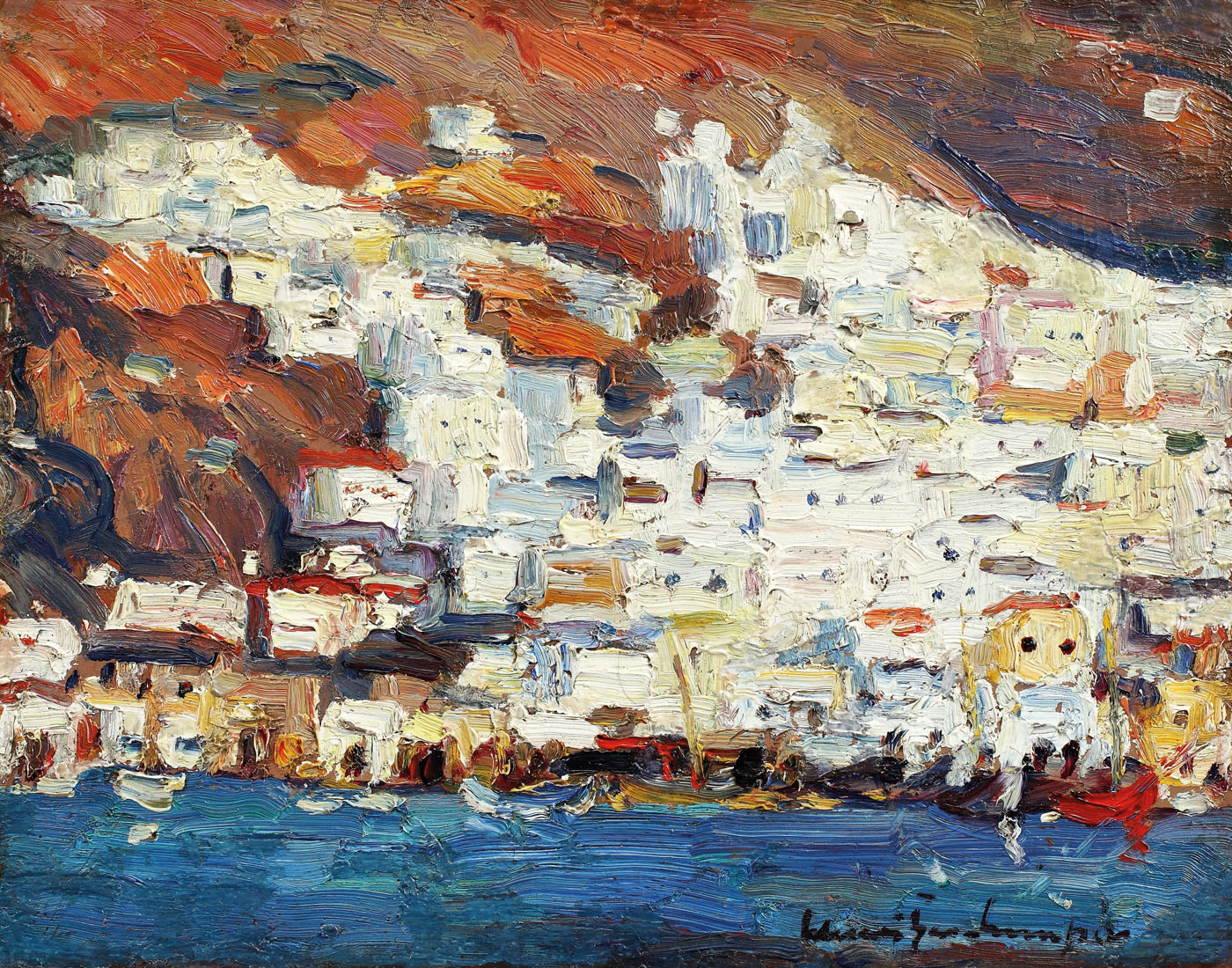 semnat dreapta jos, cu brun, "Schweitzer-Cumpăna"