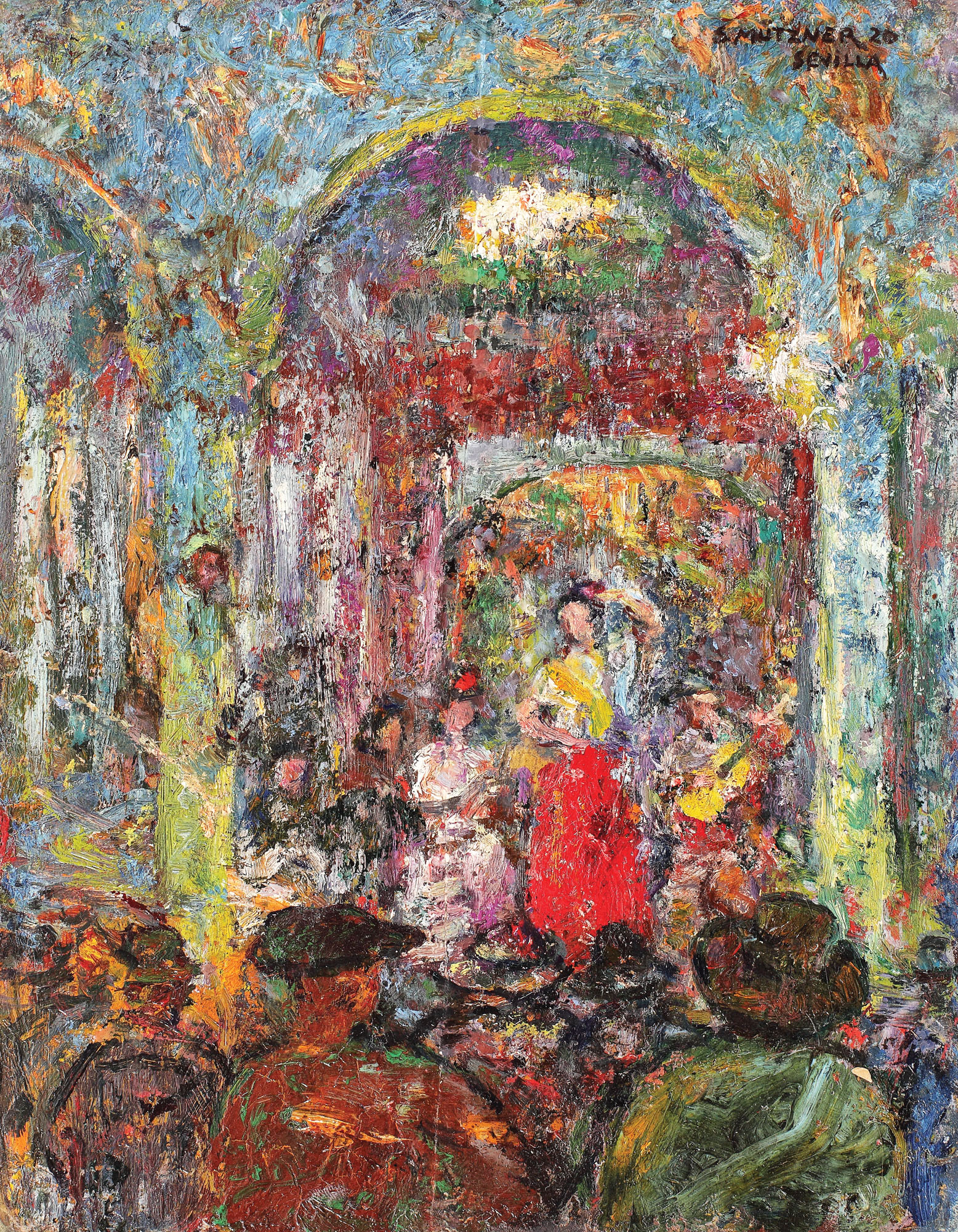 semnat, datat şi localizat dreapta sus, cu negru, "S. MUTZNER, (19)20, SEVILLA"