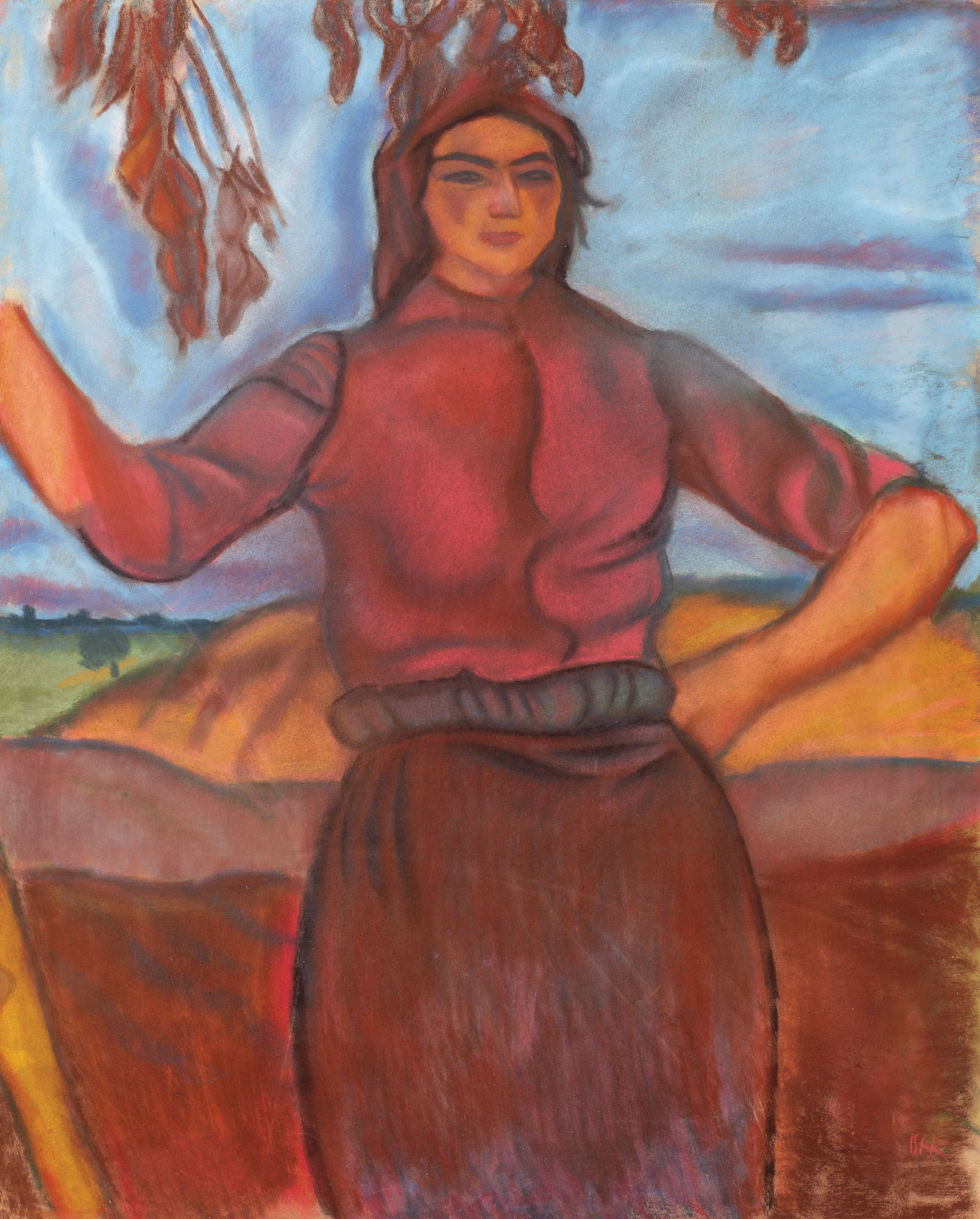 pastel pe hârtie lipită pe carton