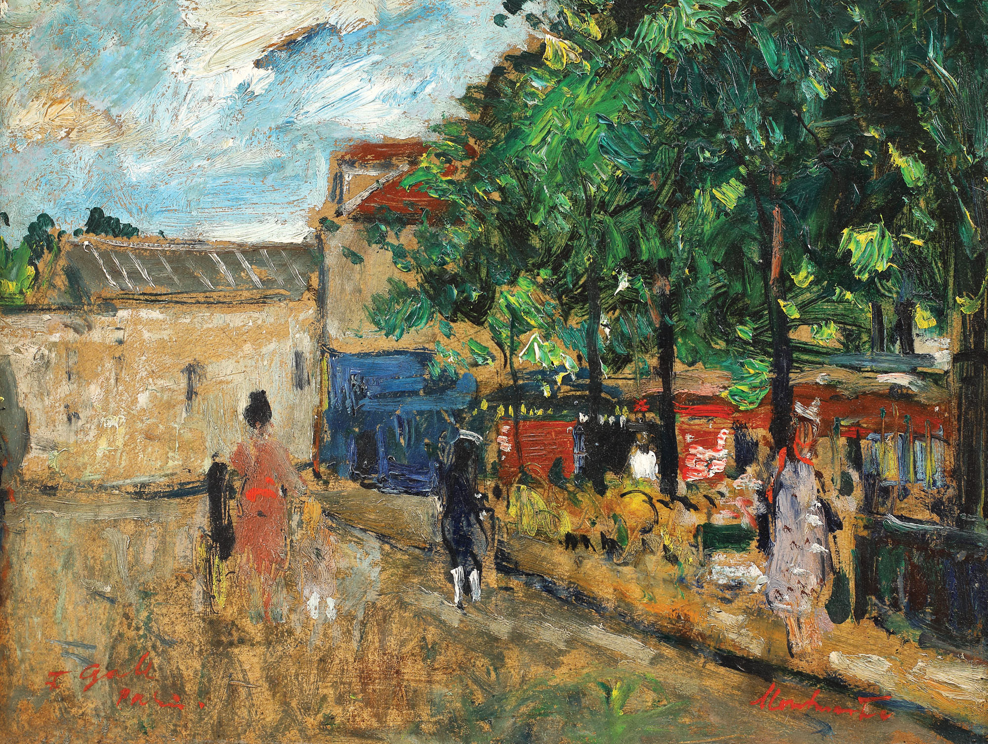 semnat și localizat, stânga jos, cu oranj, ”F. gall, Paris”; localizat dreapta jos, cu oranj, ”Montmartre”