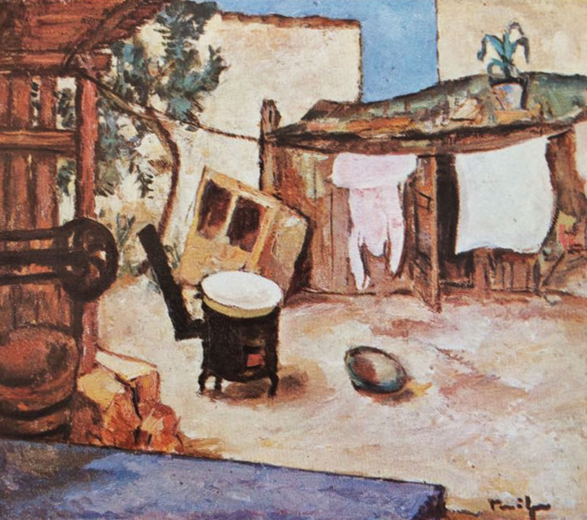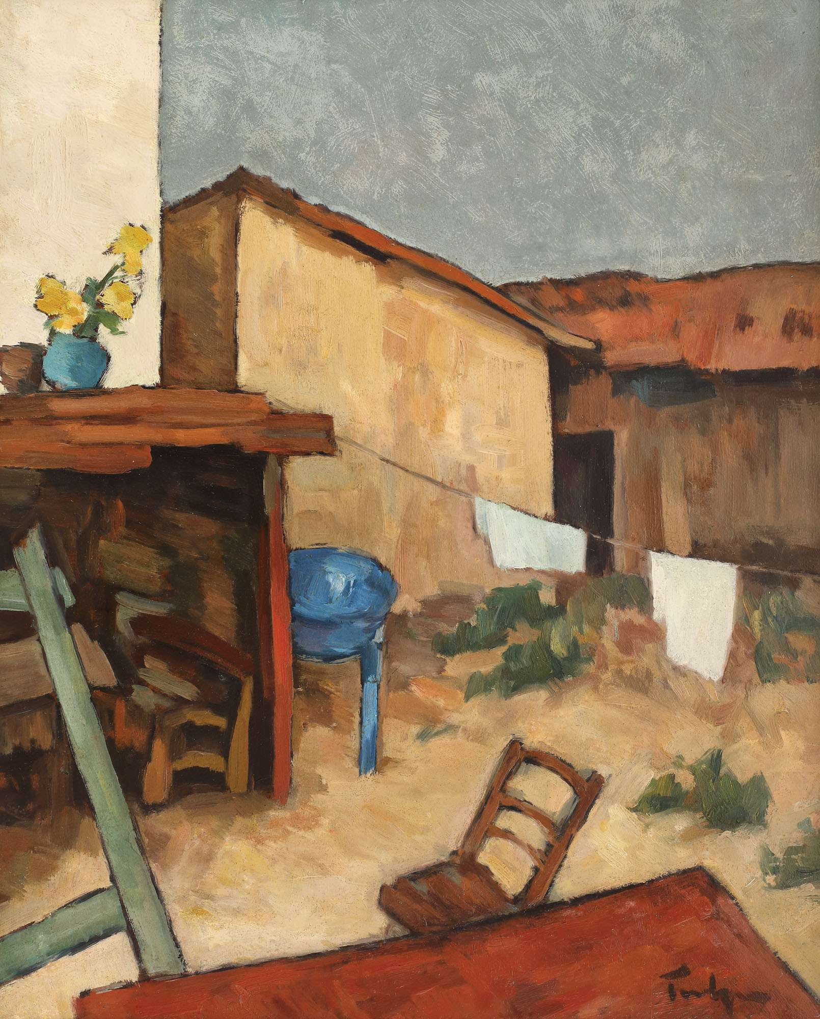 Fosta cetate antică a reprezentat un important izvor de inspirație pentru numeroși artiști în perioada interbelică datorită subiectelor și peisajelor captivante cu care își fermeca publicul. Exemplificând țărmul Mării Negre, barcazurile surprinse în larg, farurile maritime, hanurile, cafenelele, brutăriile, casele, curțile, stradelele, fântânile, așezămintele islamice, cimitirele dar și bazilicile ortodoxe, toate reprezintă imagini ale peisajului dobrogean de care creatorii săi s-au lăsat impresionați. Cele mai întâlnite motive surprinse erau scenele periferice, peisajele marine, Farul de orientare al Vapoarelor de la dig, Geamia Esmahan Sultan, Biserica Greacă, interioare ale curților sau simple colțuri de stradă. Printre artiștii care au ajuns aici și au oglindit peisajul dobrogean se numără: Dumitru Ghiață, Alexandru Satmary, Jean Alexandru Steriadi, Ion Țuculescu, Gheorghe Petrașcu, Francisc Șirato, Ștefan Dimitrescu sau Nicolae Tonitza - ultimii trei făcând parte din trio-ul de pictori din Grupul celor 4, artiști ce au oglindit în operele lor numeroase peisaje mangaliene. Tonitza descoperea Mangalia în vara anului 1925 și continuă să revină aici pană în 1930, timp în care realizează scene din natură, tema naturii însemnând pentru artist o retragere spre o altă latură a realității, mărturisind că "Suprema voluptate nu stă în diversitatea și adâncimea jocurilor sufletești pe care mi le provoacă natura, cât în aspectele pe care sufletul meu le dorește și le impune naturii". Prin trecerea anilor, tendințele creatoare ale lui Tonitza s-au îndreptat ușor și spre o tematică mai senină, cum sunt peisajele surprinse în plein-air, unde coloritul începe să dobândească un loc al său, într-un tumult de ocru, galben, terra di Siena arsă, vibrații de auriu sau cobalt. Motivele creațiilor sale rămân destul de umile, alegându-și de cele mai multe ori colțuri de mahala, interioare tărănești, case, hanuri, brutării sau curți. Fire prietenoasă, este găzduit în casa bătrânului Tefik, gazda sa din vara anului 1930, pe care îl ilustrează într-un portret în ulei dar și casa acestuia care se regăsește imortalizată în acuarelă în multe din operele sale. Din casa acestuia îi împărtășește camaradului său, Constantin Vlădescu impresiile sale despre Mangalia și îl invită să picteze alături de el. Meleagurile dobrogene l-au inspirat la crearea peisajelor periferice, redându-le ambianța și surprinzându-le esența chiar și reprezentărilor interioare ale curților de care se pare că era fascinat. Într-unul din aceste peisaje, intitulat Curte de Mahala aduce în prim plan ocrul dominant al solului dobrogean, arămiul încaperilor din lemn și azurul pal al unui cer lipsit de nori. În pictura sa, forma și spațiul sunt integrate în culoare iar liniei i se consacră valențe armonioase de lumină. Perspectiva de asemenea este surprinsă din unghiuri diferite unde elementele compoziționale pot fi observate din față, ca prin ochii artistului. Multe din aceste peisaje de inspirație mangaliană le va prezenta cu diferite ocazii, atât în cadrul Manifestaţiei renumitului Grup al celor patru, în anul 1929 cât şi în expoziţii personale de atelier, precum cea din anul 1930.