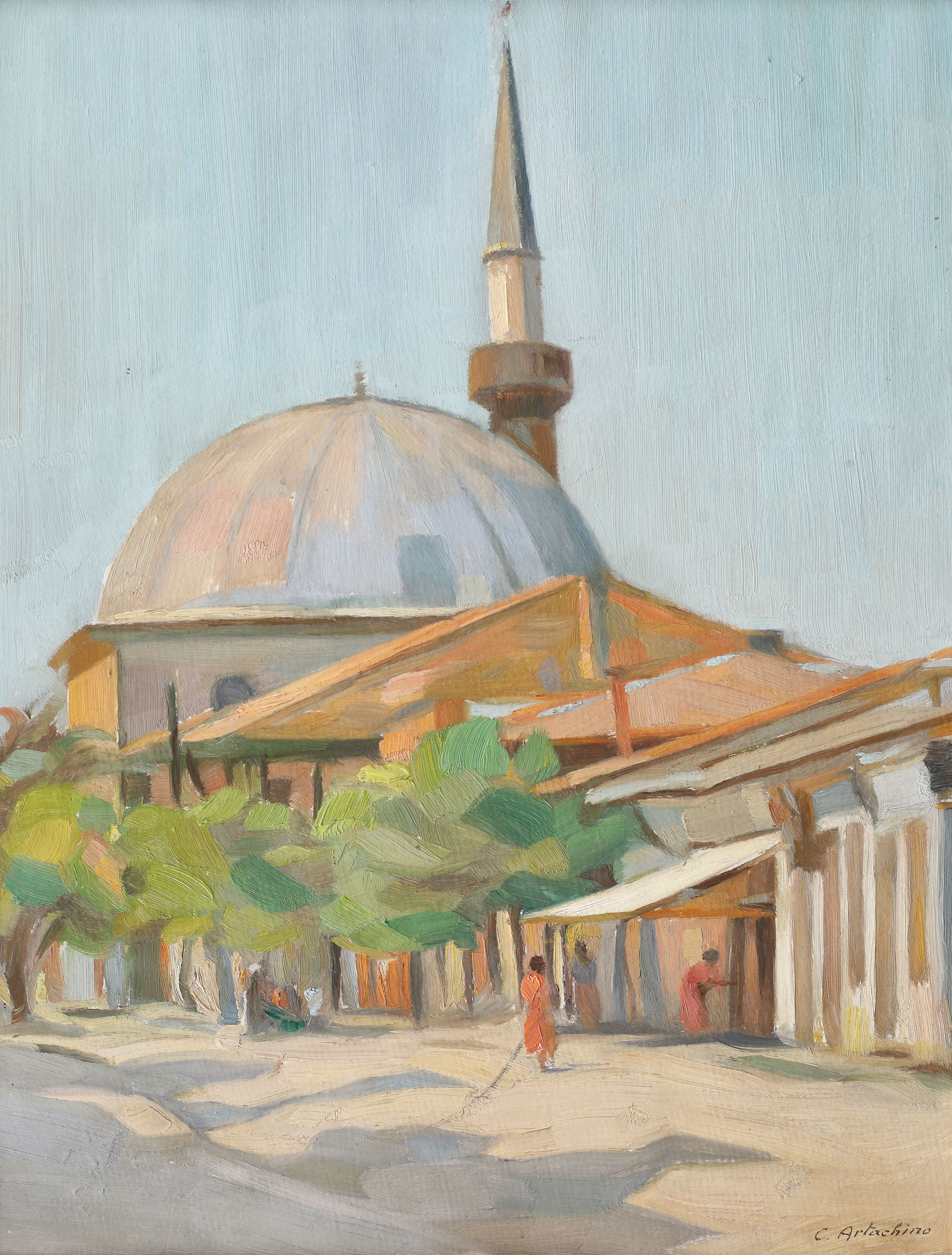 În anii ’30 are loc o mutaţie a interesului său către spaţiul dobrogean, pe care începe să-l viziteze frecvent, Turtucaia şi Balcicul devenind locuri preferate de ale pictorului pentru peisaje. Opera de față se înscrie în seria de lucrări care au rezultat din contactul lui Artachino cu Dobrogea, un motiv nou, încărcat de exotism, pe care pictorul l-a tratat într-o manieră distinctă faţă de peisajele sale anterioare. Nu renunţă la normele clasice de construcţie a perspectivei şi la regulile compoziţiei, acordând în acelaşi timp importanţă reprezentării luminii strălucitoare a litoralului. Formele sunt nete, iar detaliile abordate cu atenţie, desluşindu-se limpede în atmosfera transparentă. Culorile apar şi ele solide, în cadrul pe care îl creează desenul riguros, imprimând ordine şi permanenţă imaginii.