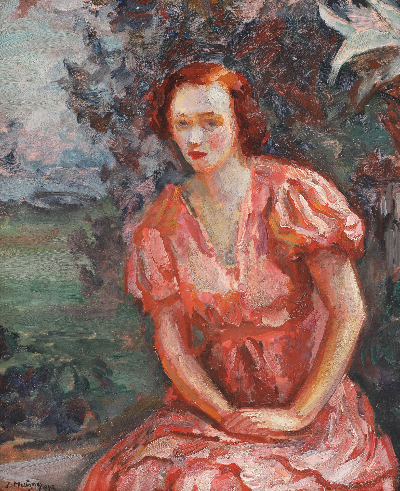 semnat și datat stânga jos, cu negru, "S. Mützner, 1942"
