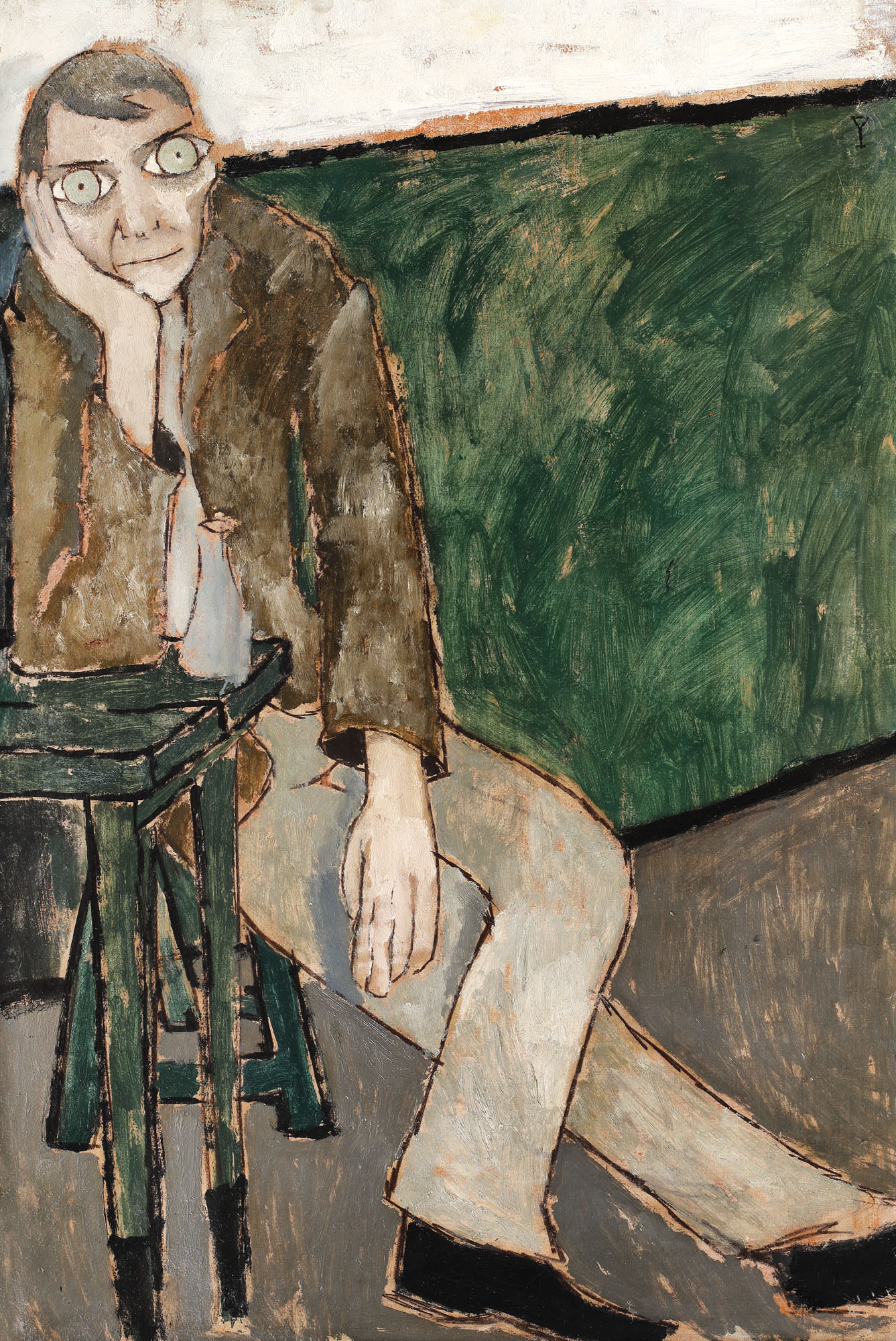 semnat dreapta sus, în monogramă, cu negru. "P"