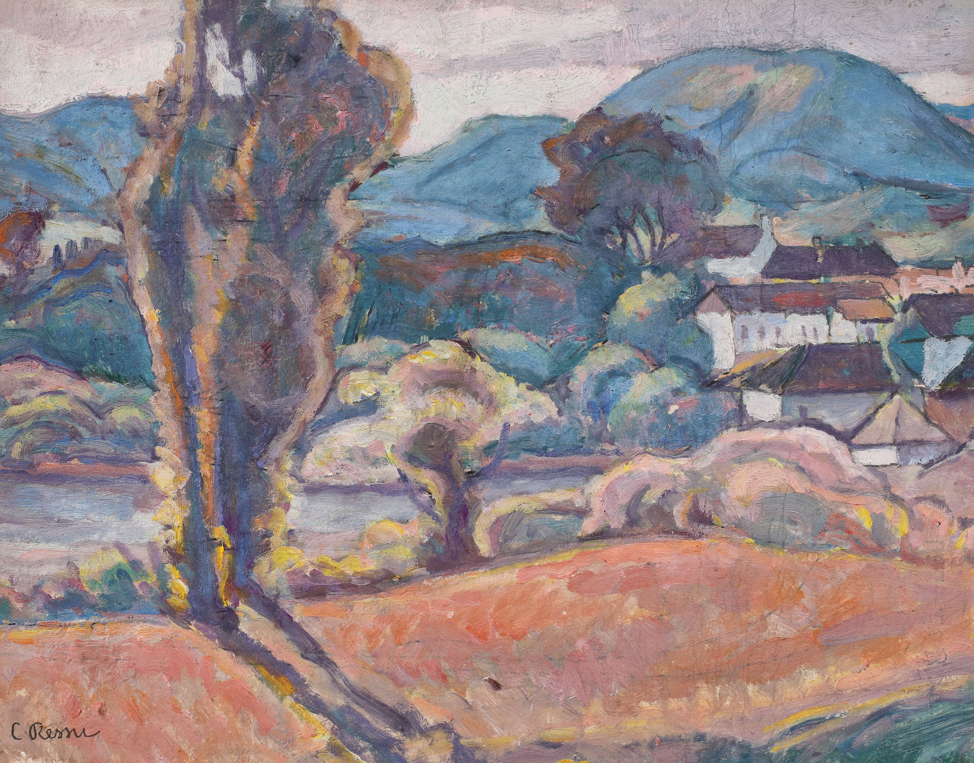 semnat stânga jos, în creion, ”C. Ressu”
