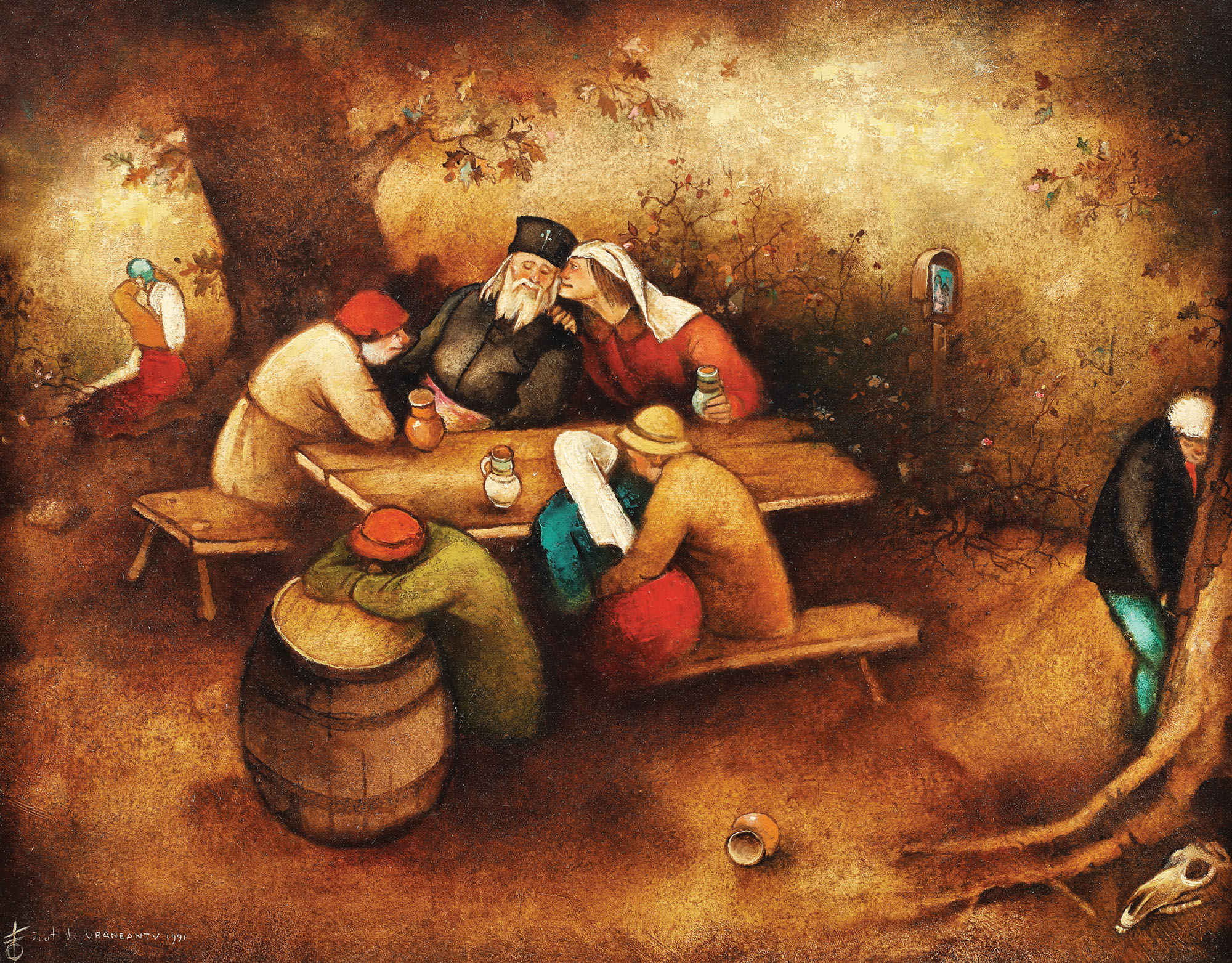 semnat și datat stânga jos, prin zgrafiere, ”făcut de Vrăneanțu, 1991”