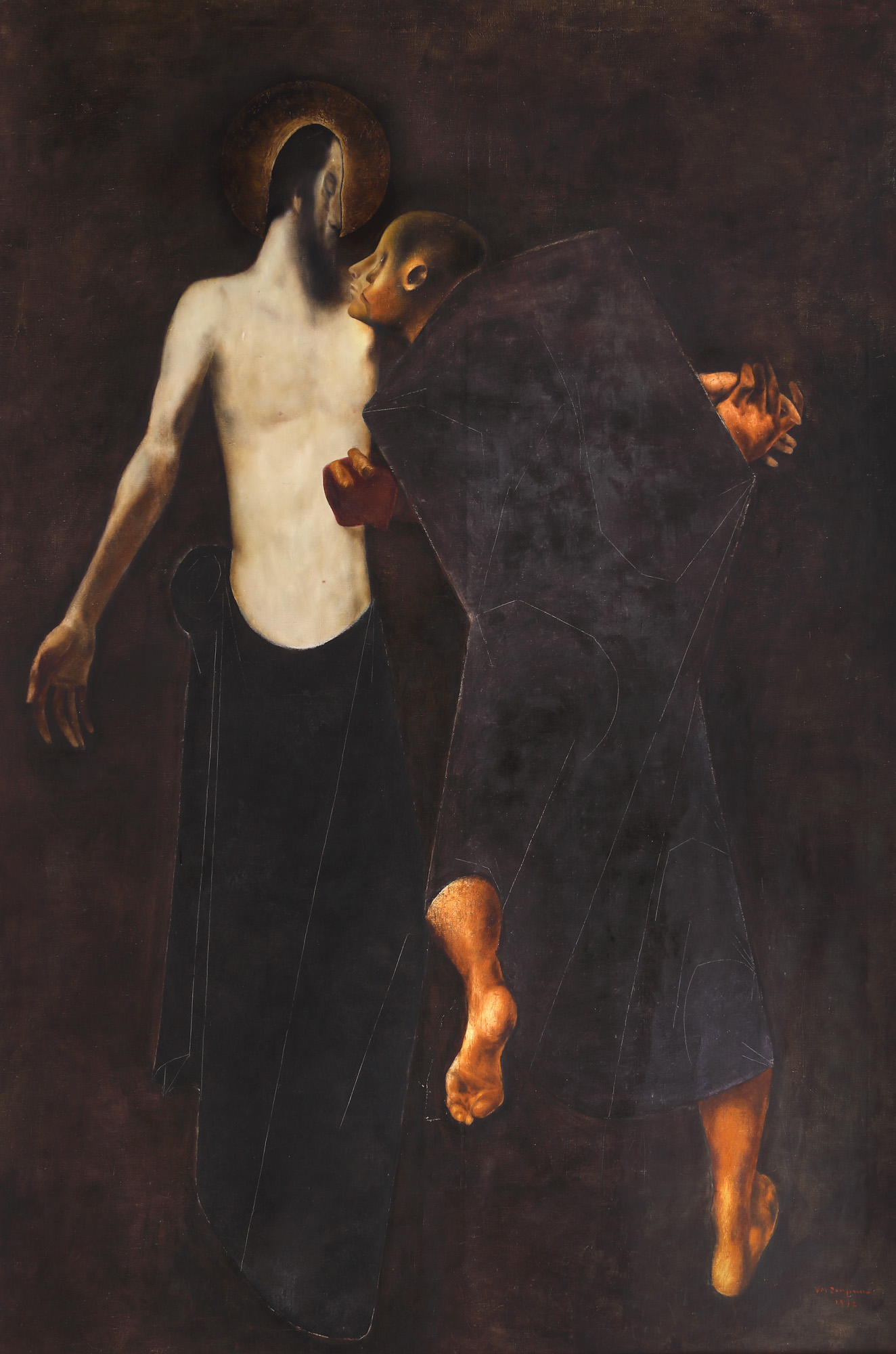 În panteonul artistic românesc, tema sacrificiului, de influență religioasă sau mitică, este abordată constant și cu perseverență de o serie de artiști, dintre care îi amintim pe Vladimir Zamfirescu, Nicolae Maniu, Corneliu Baba sau Ștefan Câlția. Din pictura lui Vladimir Zamfirescu se desprinde o componentă spirituală, biblică construită în jurul sentimentului de vinovăție și al nevoii de ispășire. Artistul își transformă personajele în figuri emblematice, recurgând la mijloace stilistice pentru o descriere psihosomatică a acestora. Siluetele ușor contorsionate, dar zvelte sugerează tragismul personajelor, amintind totodată de "nodurile" care traversează viața unui om: iubirea, iubirea, moartea, trădarea, frumusețea. Vladimir Zamfirescu se inspiră în lucrările sale din tradiția bizantină, din Vechiul și Noul Testament, transformându-și lucrările în teme de meditație asupra existenței înseși. Pictează religia trăită, legenda și visul, suferința și iluminarea, iar lumina ce le înconjoară sugerează misterul și inefabilul, atemporalitatea atmosferei. O preocupare esențială a pictorului este "rana", fanta prin care se vede și izvorăște sângele, acest lichid simbolic, spiritual și material. "În tablourile lui Vladimir Zamfirescu avem despicăturile care leagă lumea văzută de cea nevăzută, adevarate răni ale spațiului...". Cristian Petru Bălan a surprins foarte bine unul dintre factorii care îl individualizează pe Zamfirescu, sesizând cum pictorul se poziționează față de valori, mai exact de intuirea celor mai durabile calități pe care stilul propriu le capătă și le păstrează. Astfel se conturează universul zamfirescian. Vladimir Zamfirescu a fost printre puținii artisti care au avut curajul de a aborda în aceste vremuri tumultoase, imaginea expresiei teandrice.
