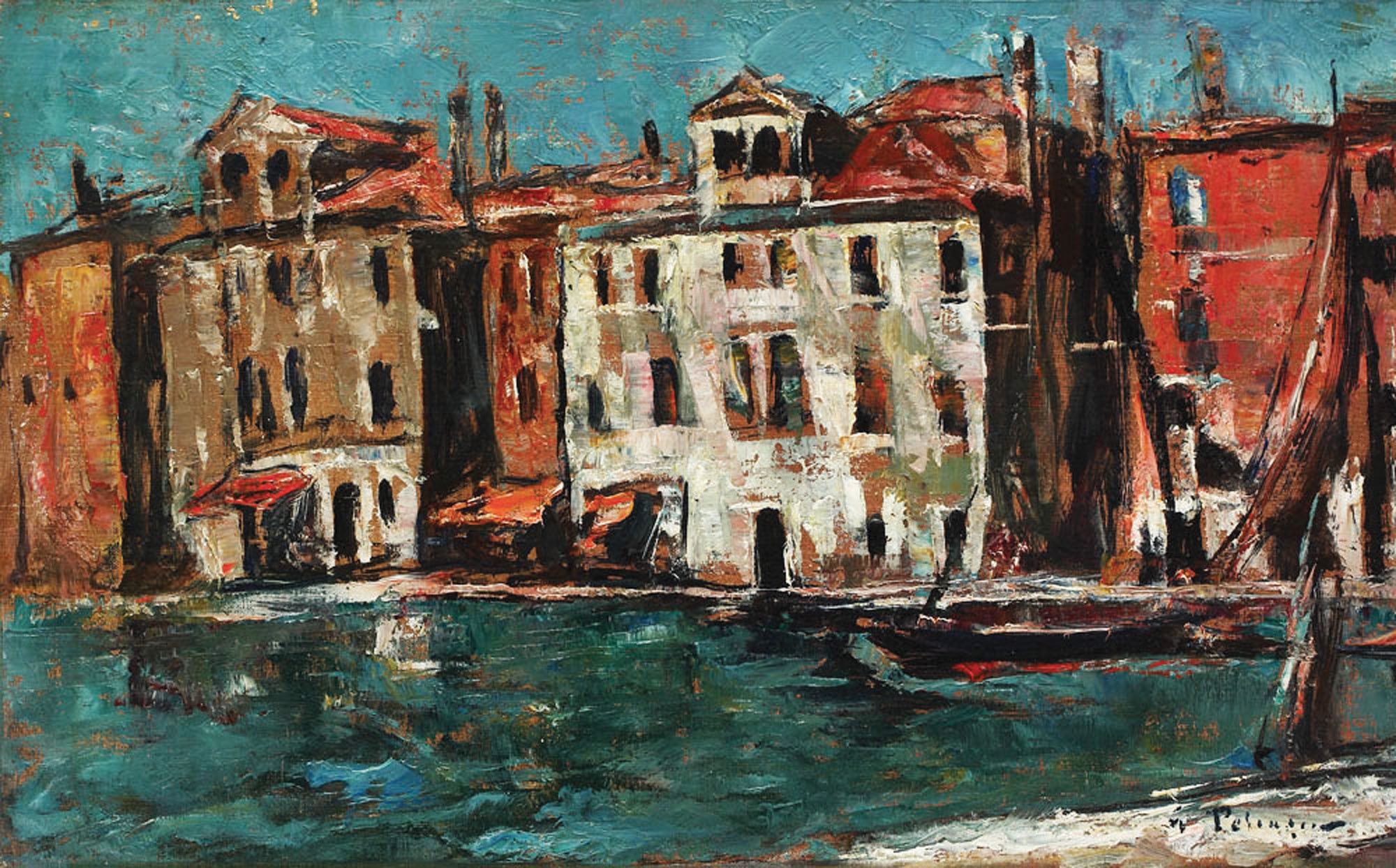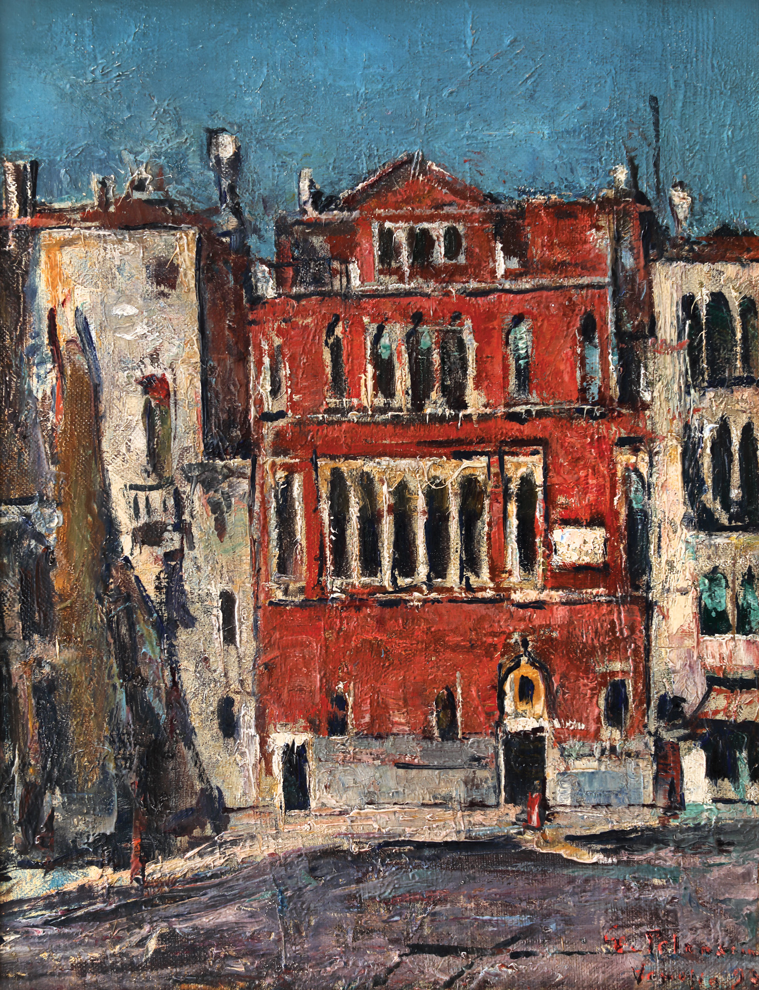 semnat, datat și localizat dreapta jos, cu roșu, ”G. Petrașcu, Veneția, (1)934”