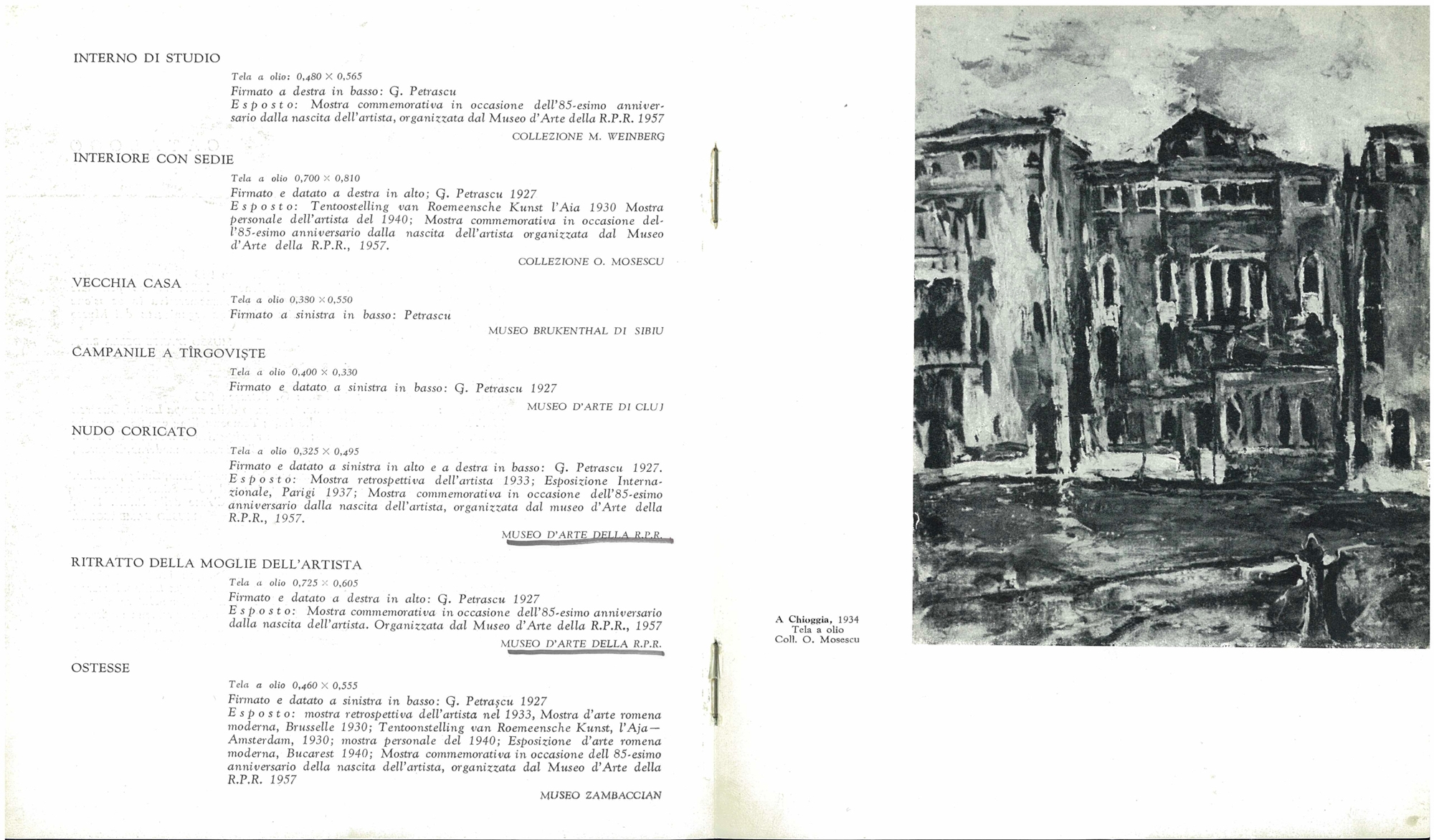 Catalogul „Expoziției G. Petrașcu”, Fundația Dalles, București, 21 mai – 1 iulie 1933. Catalogul „Expoziției comemorative G. Petrașcu”, Muzeul de Artă al RPR, București, octombrie – noiembrie 1957. Oprescu George, „Gheorghe Petrașcu”, Ed. Meridiane, București, 1963. Constantinescu Paula; Doina Schobel, Expoziția de pictură „G. Petrașcu 1872-1972”, Muzeul de Artă al Republicii Socialiste România, București, 1972. Florea Vasile, „Gheorghe Petrașcu”, Ed. Meridiane, București, 1989.