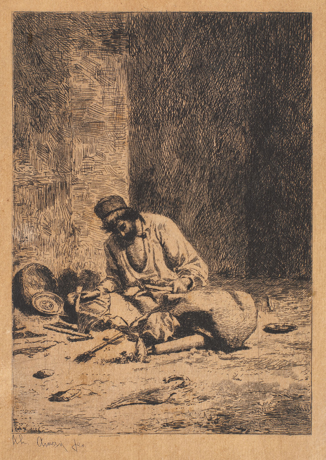 semnat stânga jos, gravat, sub cadru, "Th. aman fec."