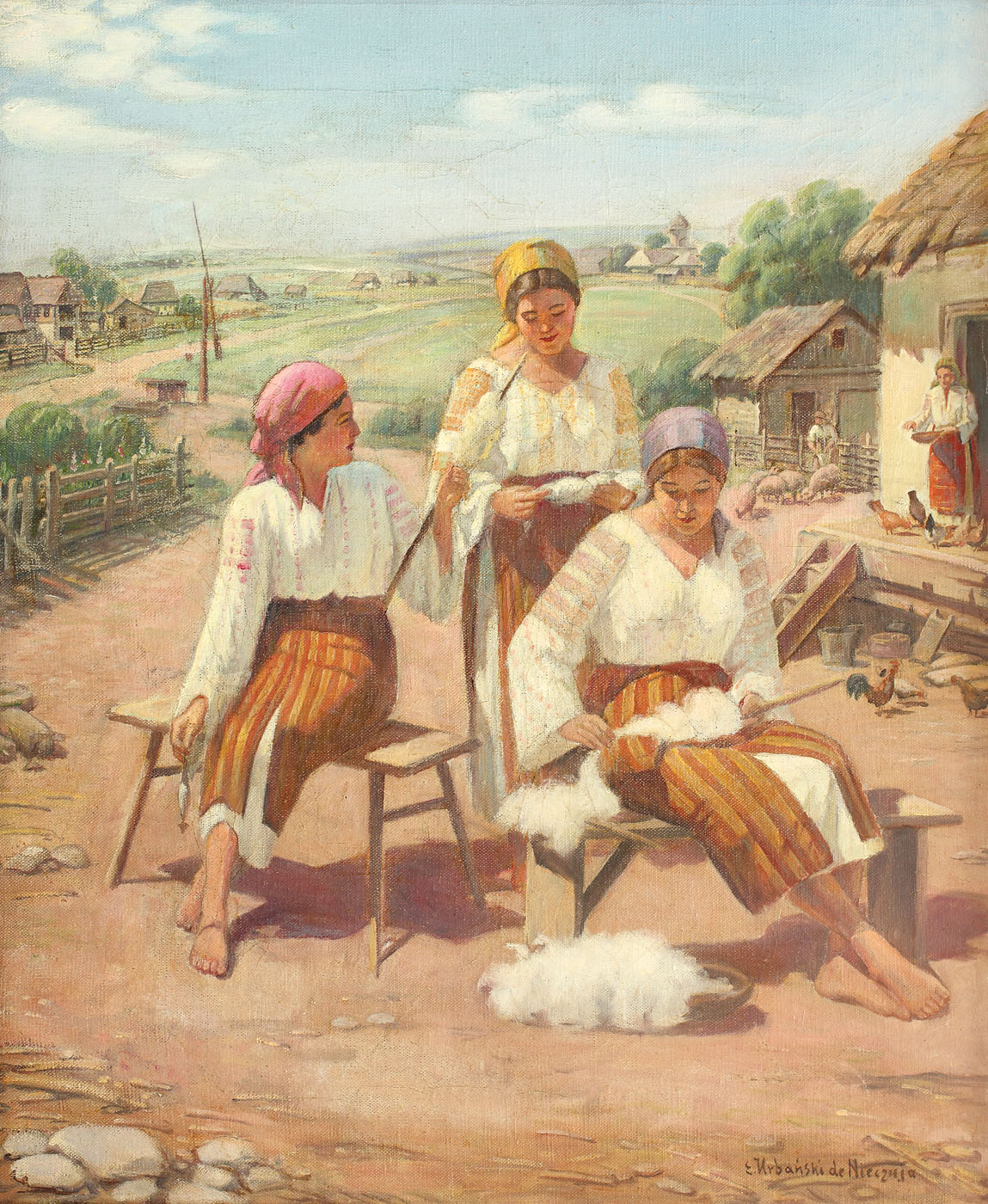 semnat dreapta jos, cu brun, E.Urbanski Nieczuja