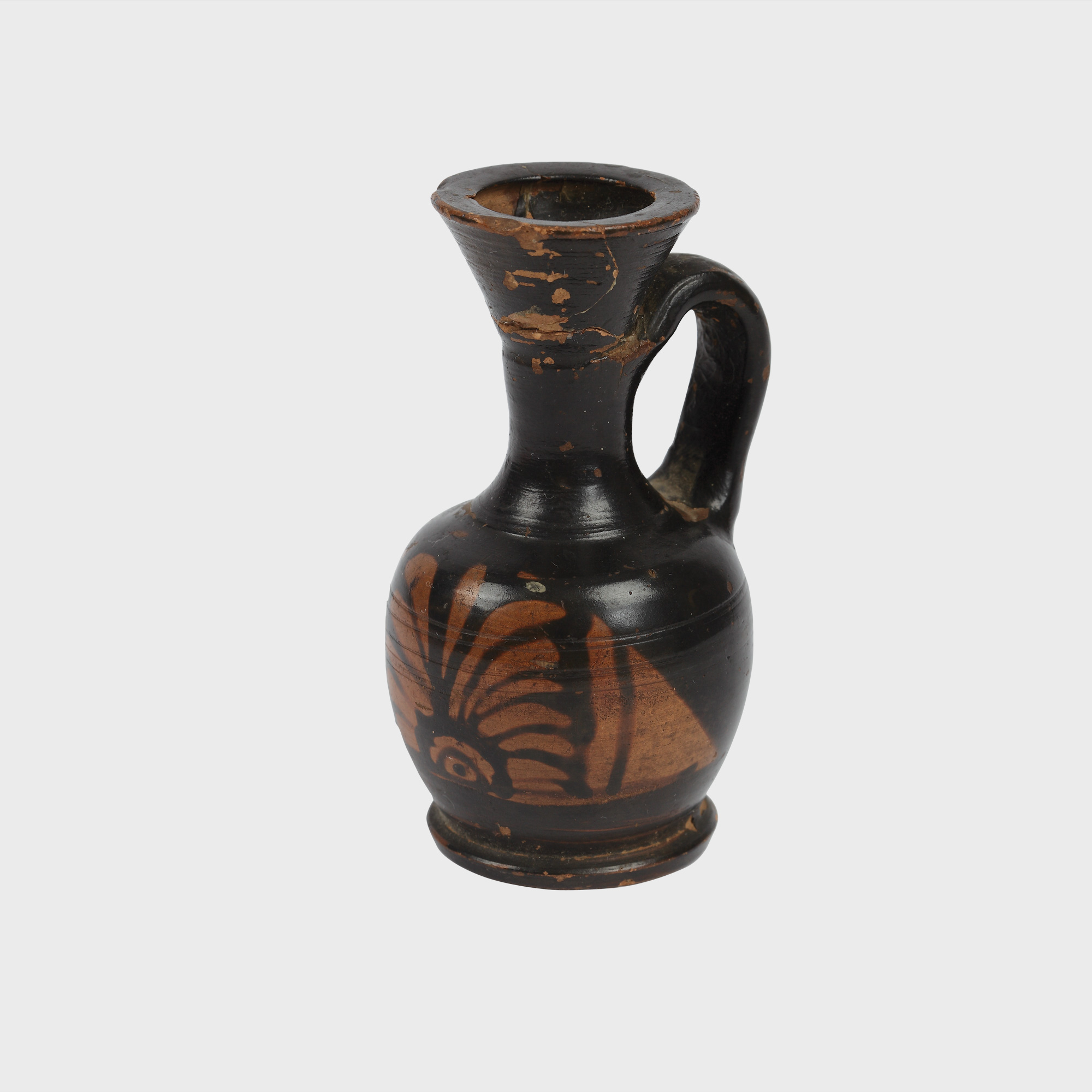 Frumosul vas Lekythos, produs la Atena în prima jumătate a sec. IV î.e.n., provine probabil din nordul Macedoniei grecești, zonă în care au fost descoperite artefacte similare. Vasul este acoperit integral de firnis negru cu luciu strălucitor, iar figuri în nuanțe de roșu oferă un decor specific perioadei. Palmeta este înconjurată de o bandă fină, între două semi-palmete. Vasele erau produse în ateliere ateniene și importate în Dobrogea. Negustorii le livrau în primul rând populației cetăților grecești. În cadrul relațiilor dintre aceste cetăți și populația locală geto-dacică, aceasta din urmă ajungea să folosească artefactele culturii materiale grecești, în special cele de uz comun. Ceramica sau monedele au fost chiar copiate, la un moment dat, de către geto-daci.