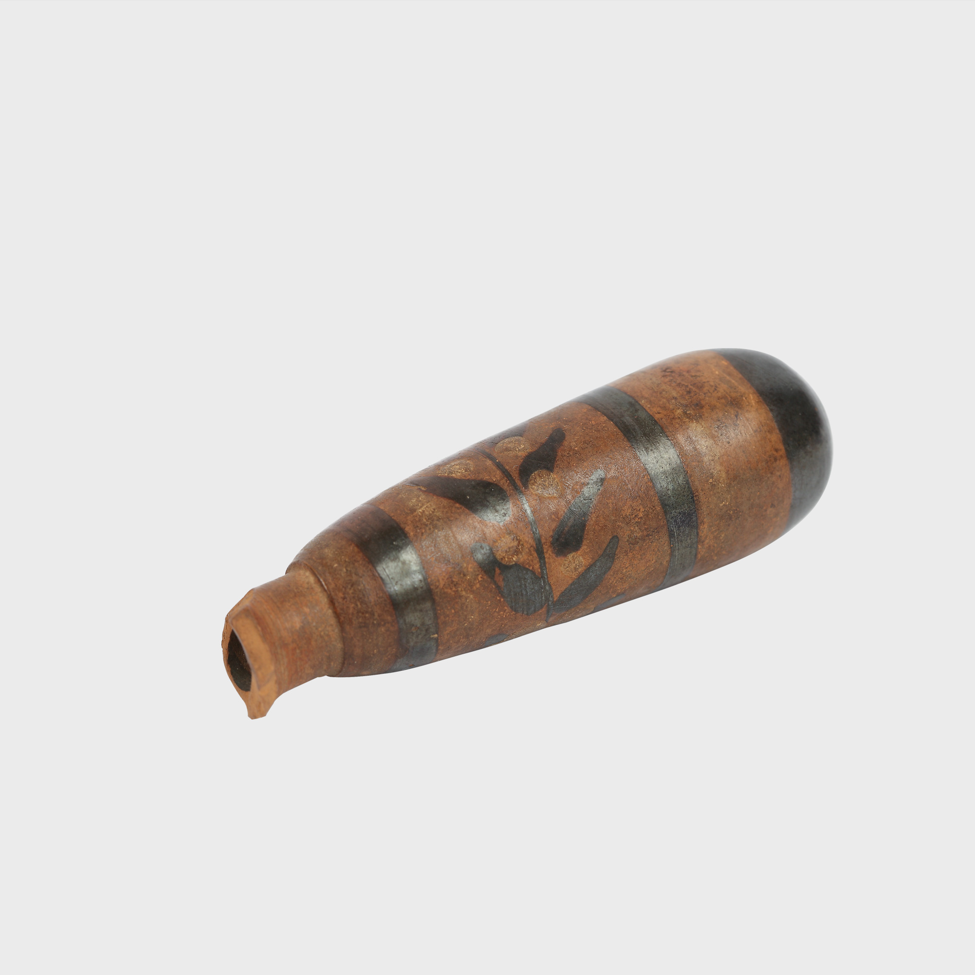 Vasul Alabastron, delicat și cu o siluetă fină, destinat păstrării uleiurilor parfumate, a fost produs într-un atelier atenian în sec. V î.e.n. Firnisul brun, trecut pe alocuri în nuanțe de brun roșcat, oferă vizibilitate motivelor decorative, dintre care remarcăm ramura de măslin desenată între două benzi late orizontale. Vasele erau produse în ateliere ateniene și importate în Dobrogea. Negustorii le livrau în primul rând populației cetăților grecești. În cadrul relațiilor dintre aceste cetăți și populația locală geto-dacică, aceasta din urmă ajungea să folosească artefactele culturii materiale grecești, în special cele de uz comun. Ceramica sau monedele au fost chiar copiate, la un moment dat, de către geto-daci.