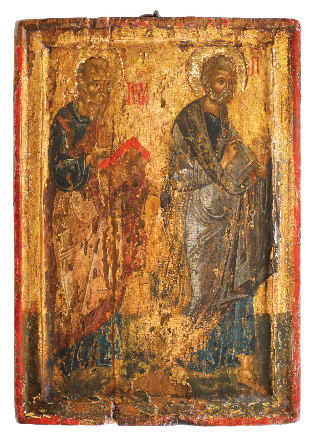 50C. Icoană pe lemn, ”Sfinții Apostoli Ioan și Petru”, Țara Românească, prima jumătate a sec. XVI, piesă de colecţie