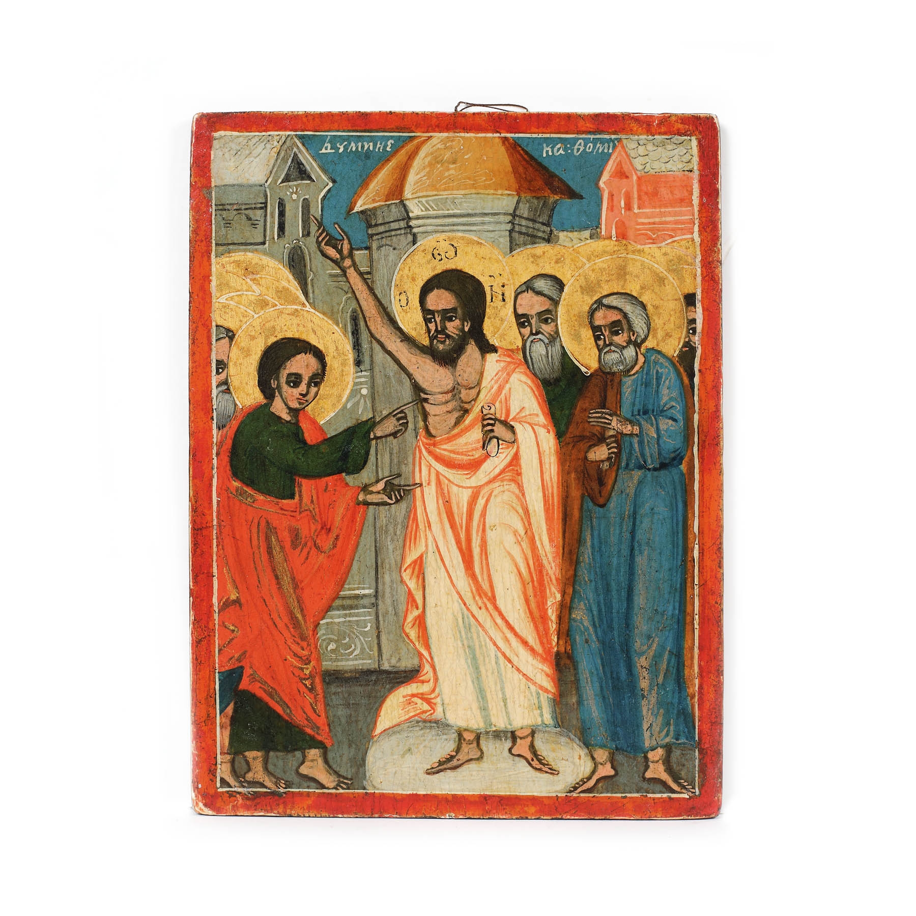 65. Icoană dublă prăznicar, ”Învierea lui Lazăr” și ”Necredinţa lui Toma”, Țara Românească, școală românească, începutul sec. XIX [early 19th Century]