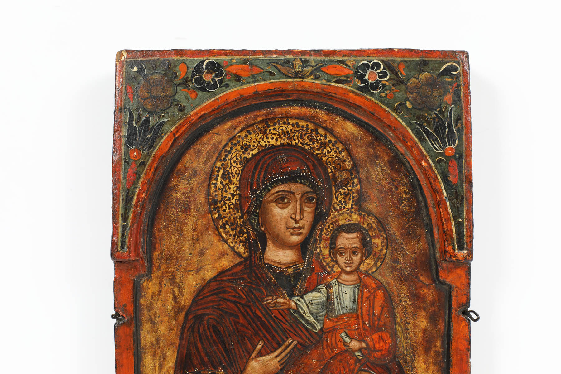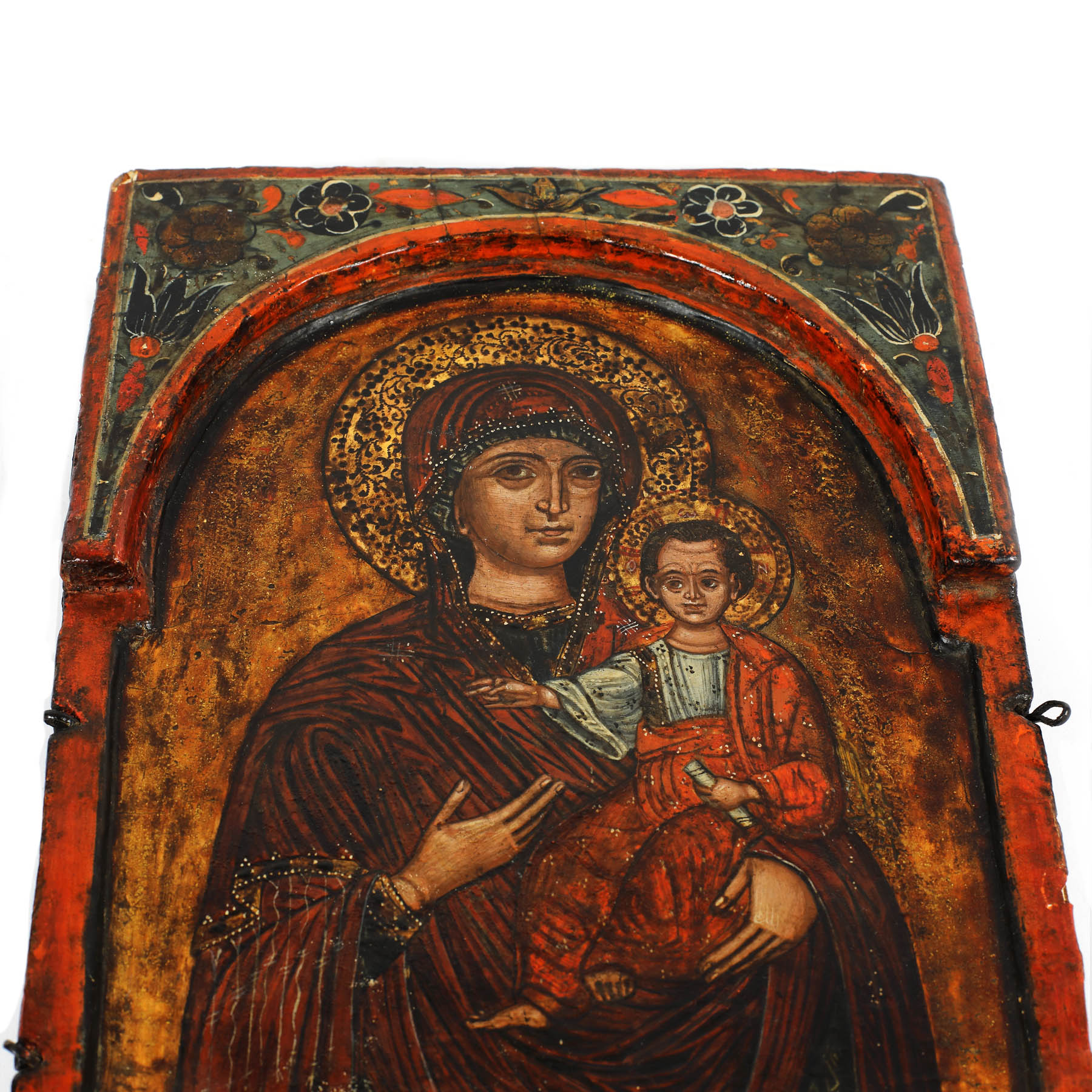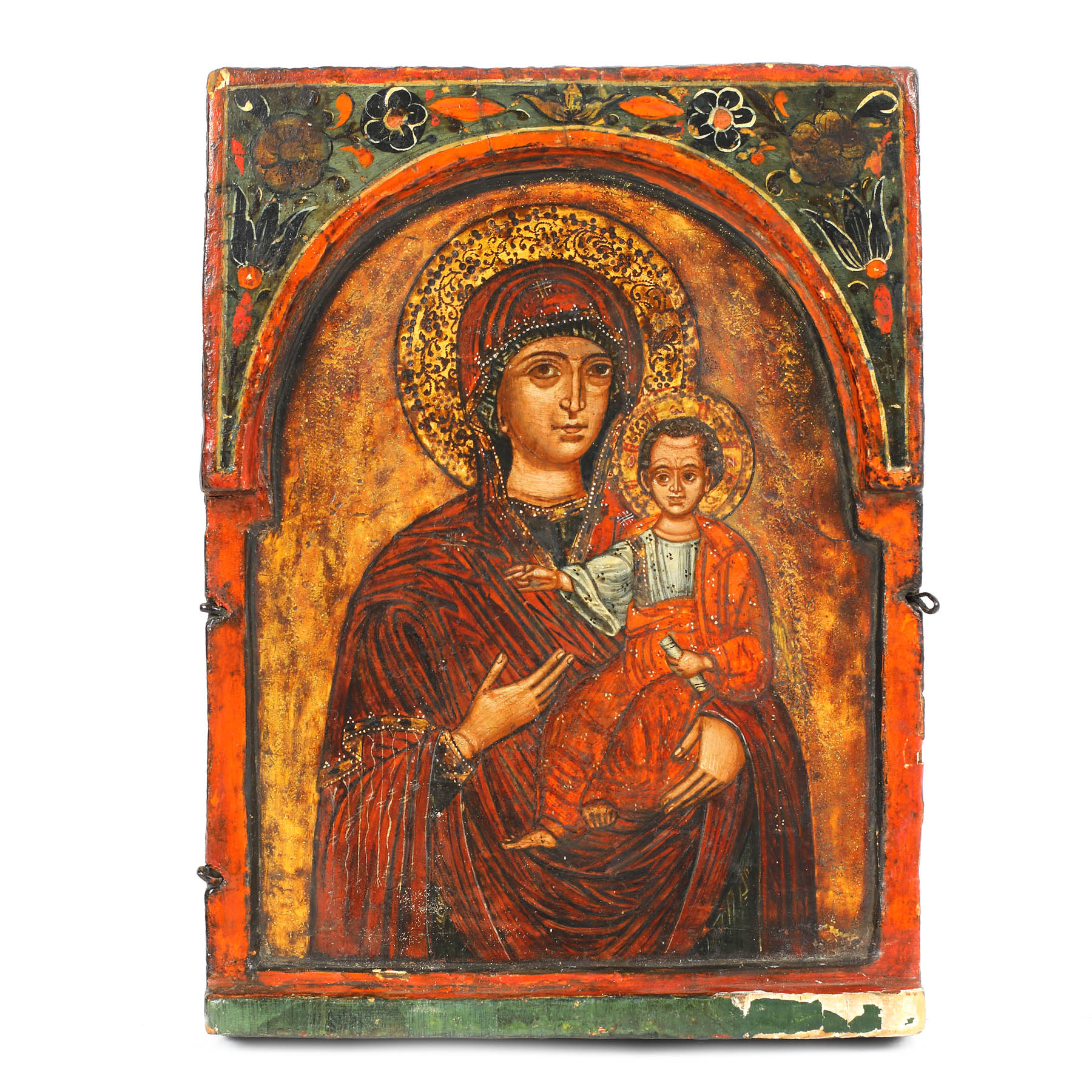 60. Icoană pe lemn, "Maica Domnului cu Pruncul (Hodighitria)”, Țara Românească, școală grecească, epoca lui Constantin Brâncoveanu, începutul sec. XVIII, de colecție [early 18th Century]